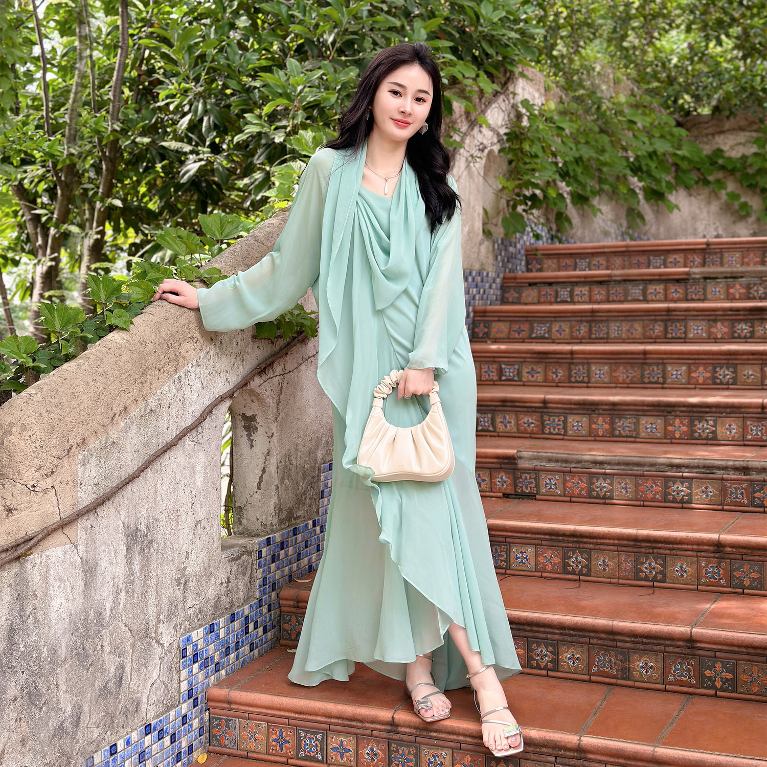 📚 TU 浮光半夏 不规则真丝连衣裙海边氛围感薄荷绿穿搭桑蚕丝长裙子