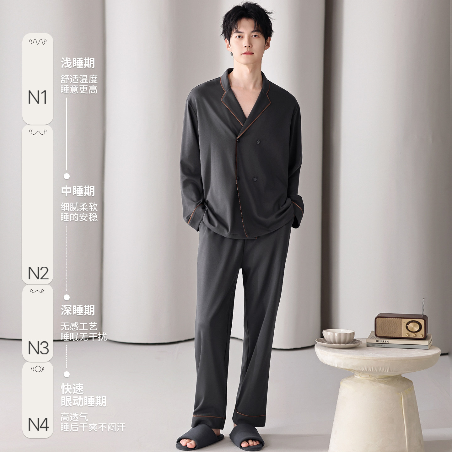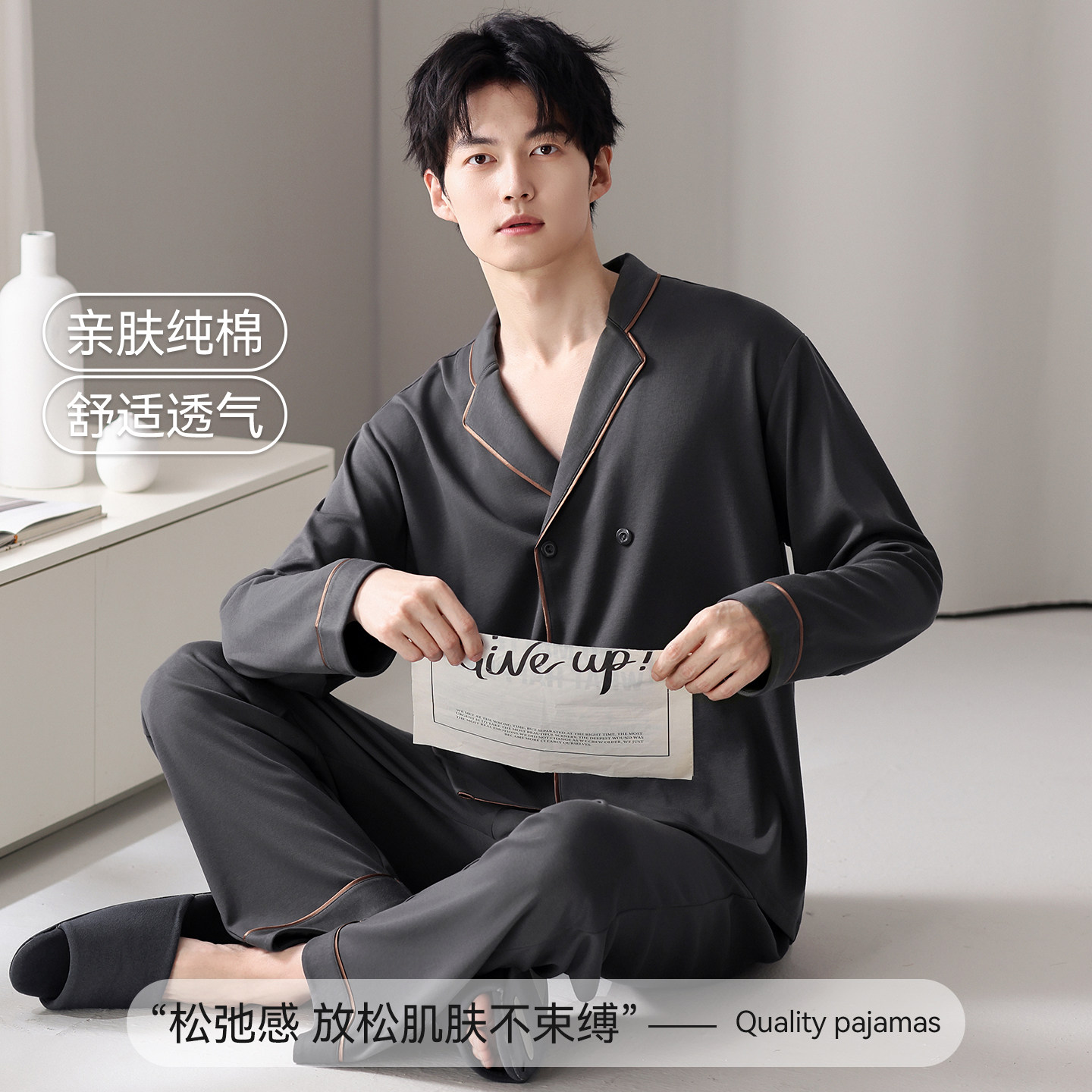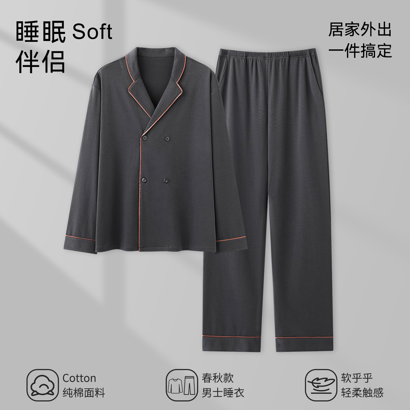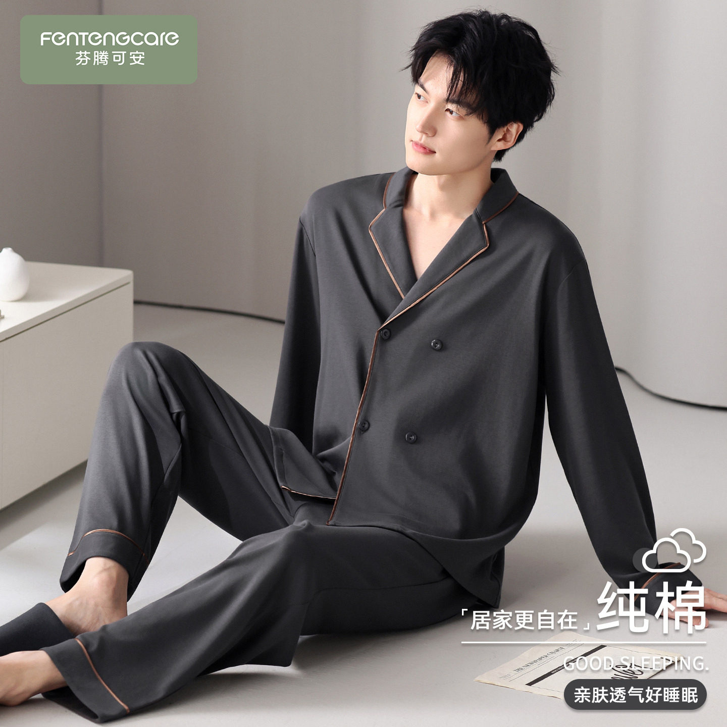 📚 芬腾可安睡衣男士男款冬季纯棉四季通用长袖大码爽朗家居服春秋款