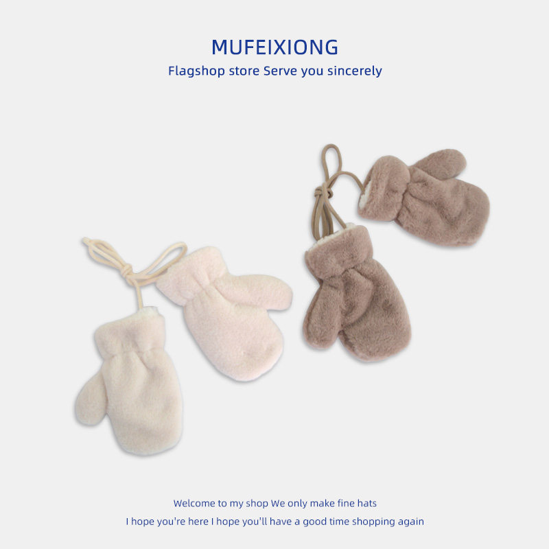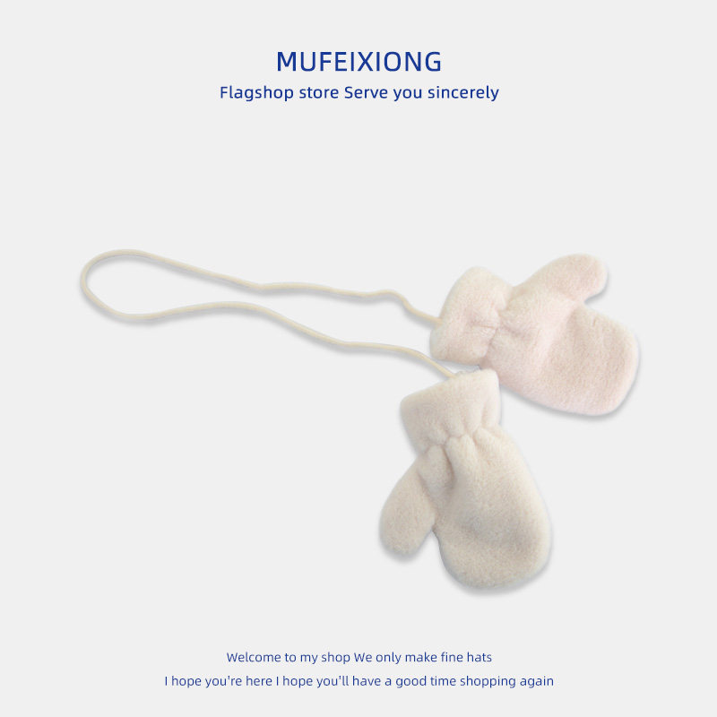 📚 秋冬儿童手套羊羔绒加绒保暖纯色毛绒男女童宝宝连指挂脖手套冬