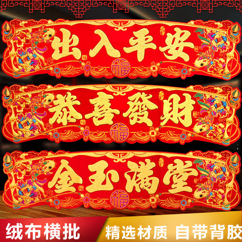 📚 绒布平安横批门贴春节装饰乔迁新年门头贴纸金玉满堂入户门横幅