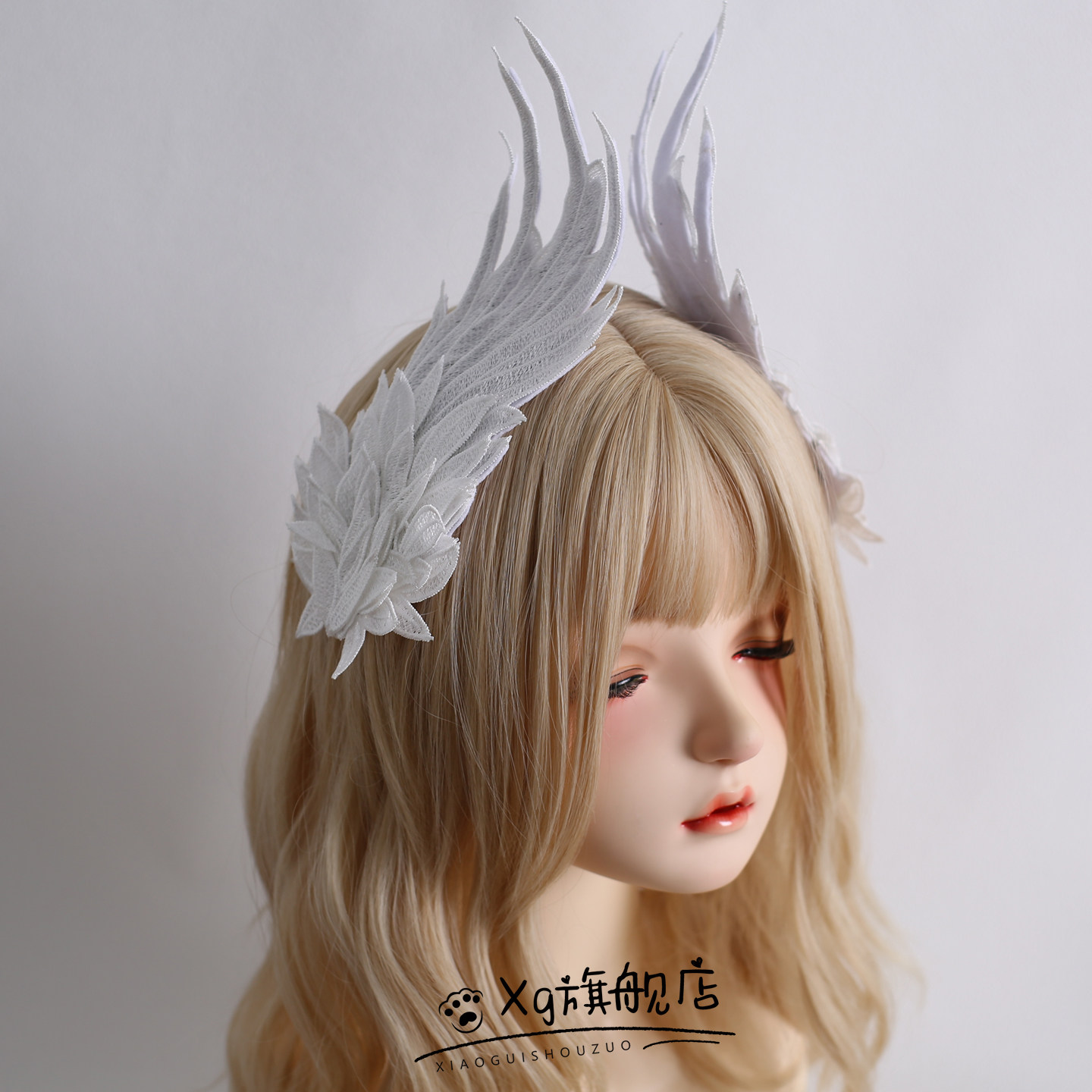 📚 lolita哥特刺绣羽毛发夹天使翅膀头饰氛围白天鹅对夹发饰边夹发夹