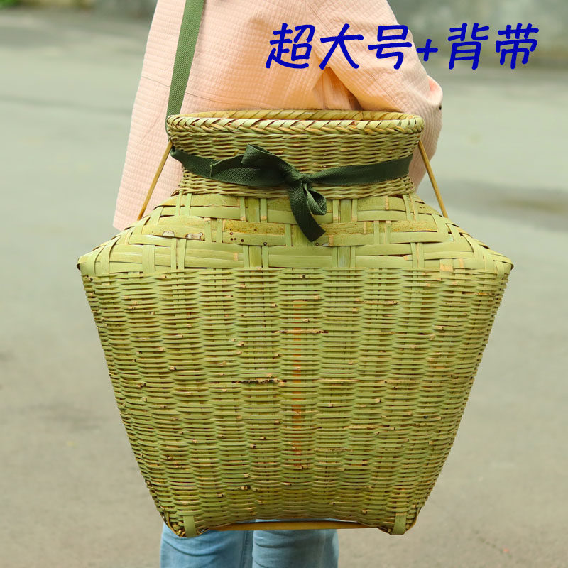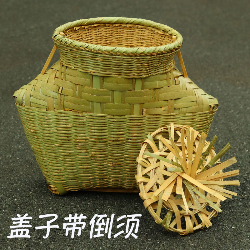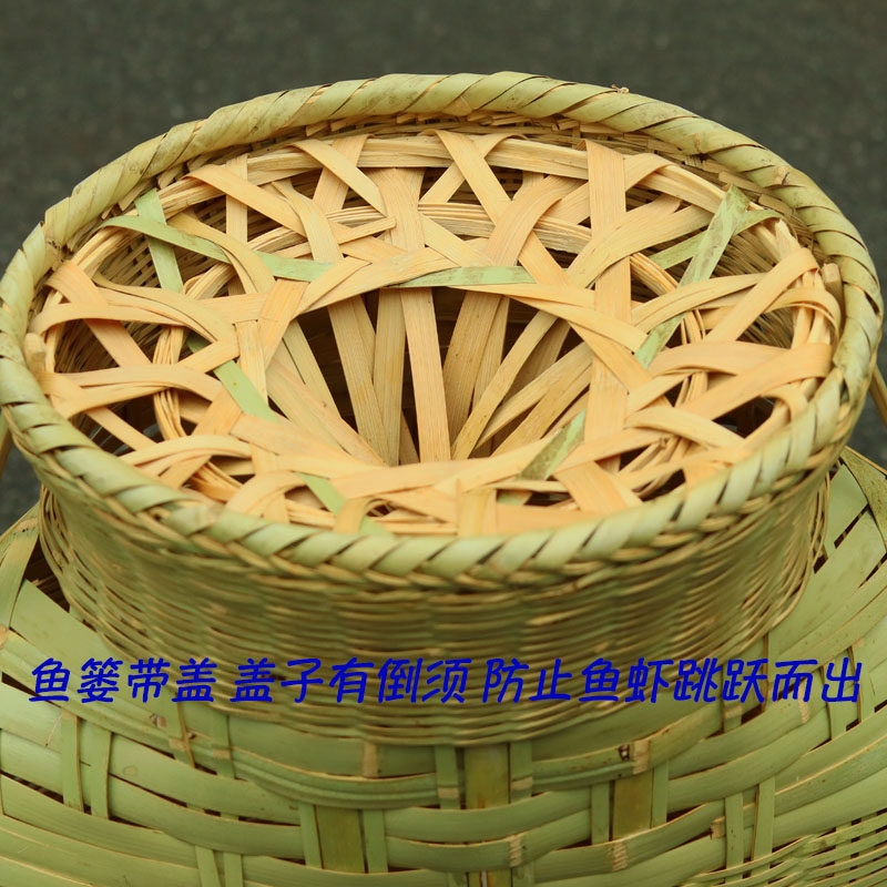 📚 手工竹编带盖鱼篓泥鳅黄鳝篓虾笼叶篓水果篓带盖子竹篓手挽鱼鱼笼