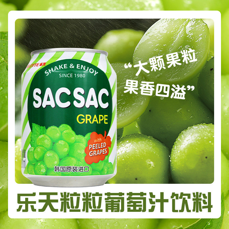 📚 韩国进口LOTTE乐天韩式葡萄汁草莓汁果粒易拉罐7口味任选过节聚餐
