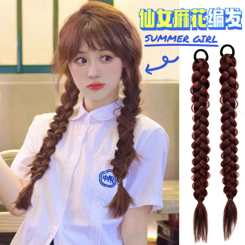📚 假发网红自然双马尾辫甜酷辣妹鱼骨辫头饰辫子麻花长辫发绳拳击辫