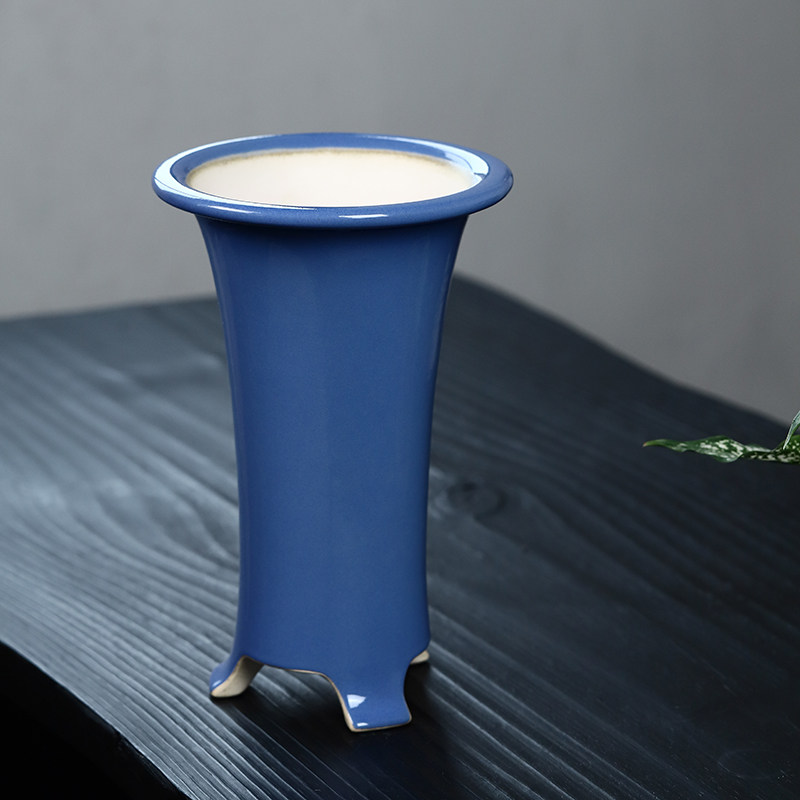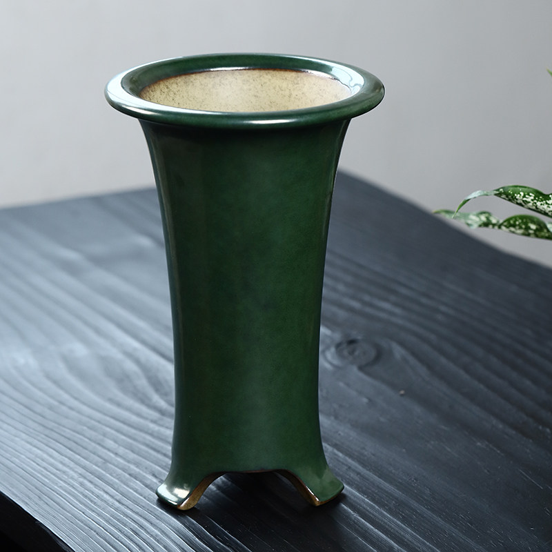 📚 秦夕洪紫砂釉面兰花盆宜兴精品三脚束腰H细苗建兰春夏兰植物桌面