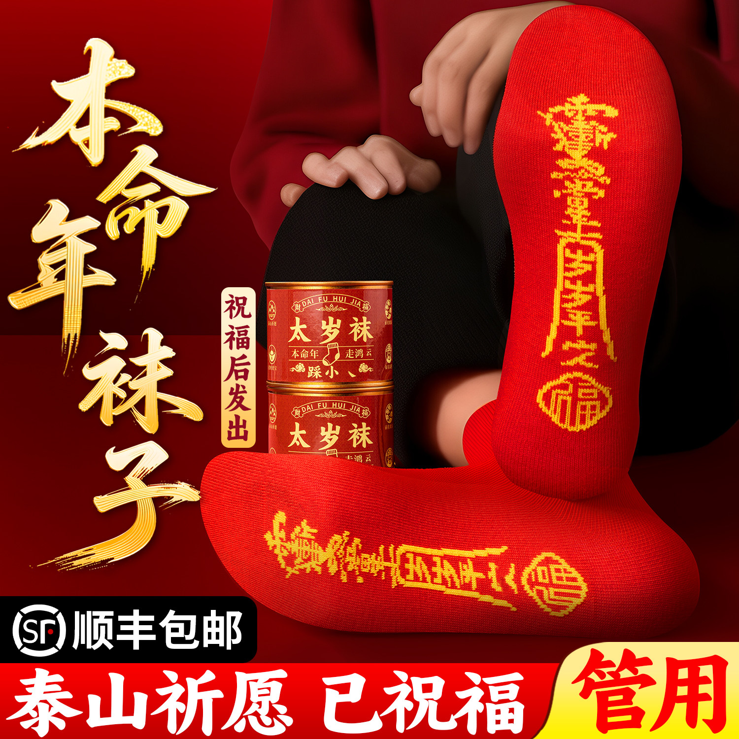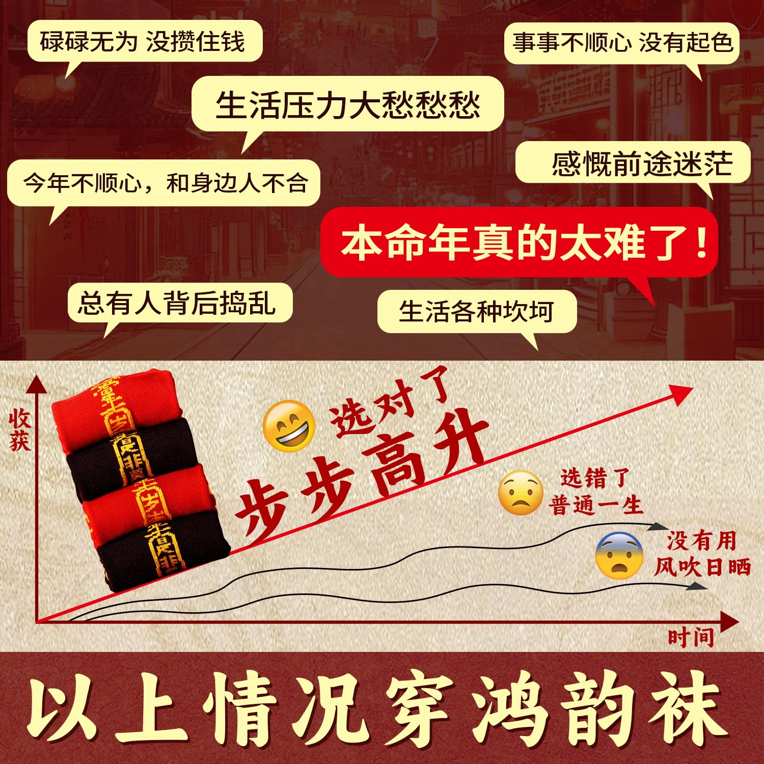 📚 本命年袜子红色男女士2026马年纯棉太岁袜男女士属马鼠兔小人袜踩