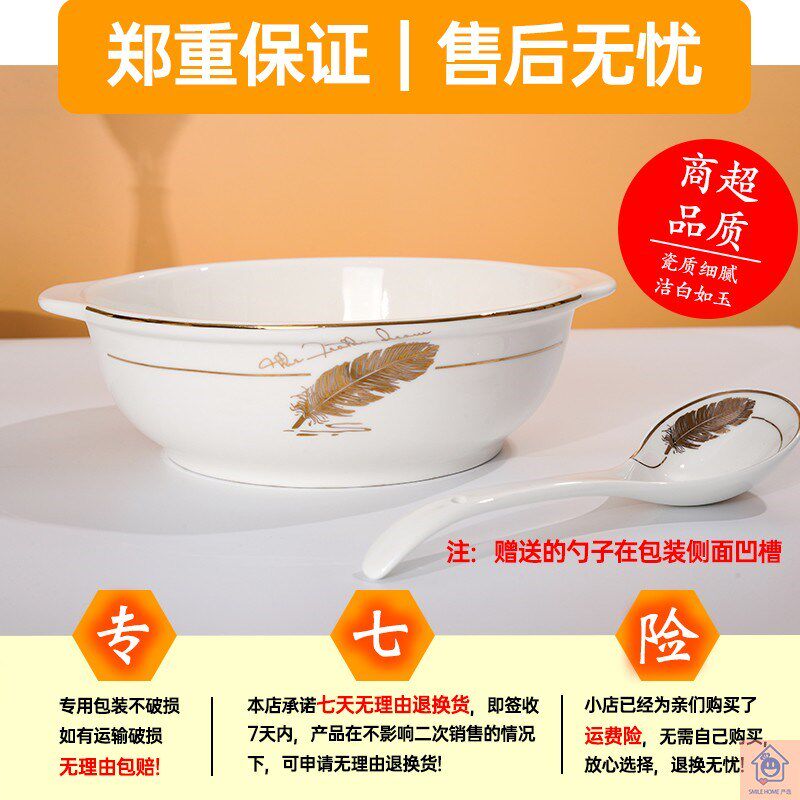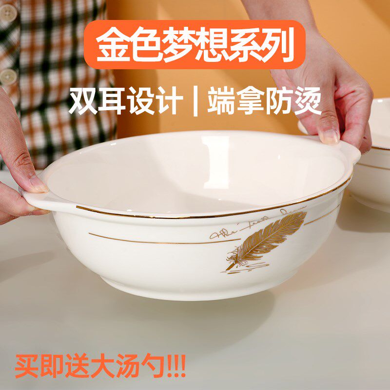 📚 天顺陶瓷11英寸双耳端拿防烫汤锅大汤碗汤古汤盆家用大号轻奢金色