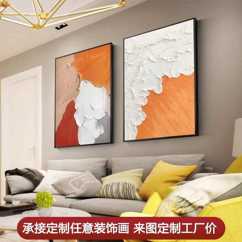 📚 手绘油画现代简约轻奢厚彩抽象立体橙装饰画玄关过道连廊客厅挂画