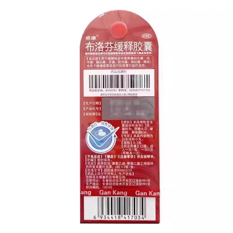 📚 感康布洛芬缓释胶囊12粒感冒药缓解头痛牙痛痛经流感感冒发热ZM