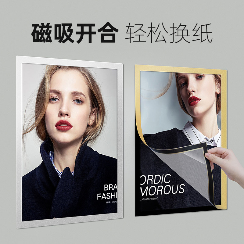📚 展示牌挂墙磁吸海报框免打孔宣传展板墙面可更换广告牌贴墙制度牌