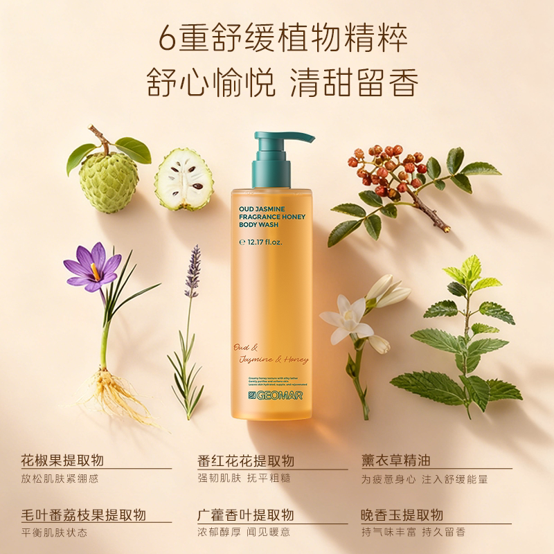 📚 【新品上市】Geomar/吉儿玛晚安沐浴蜜乌木茉莉香保湿蜂蜜沐浴露