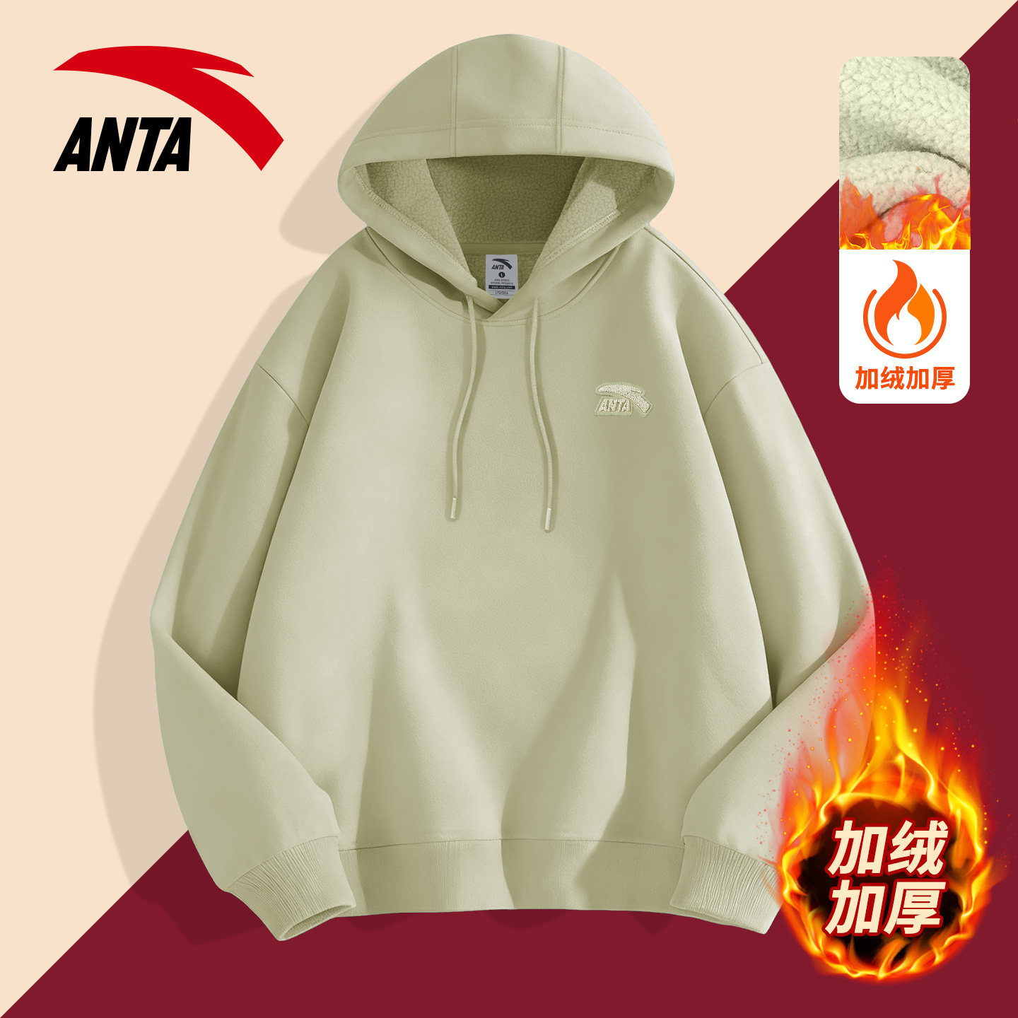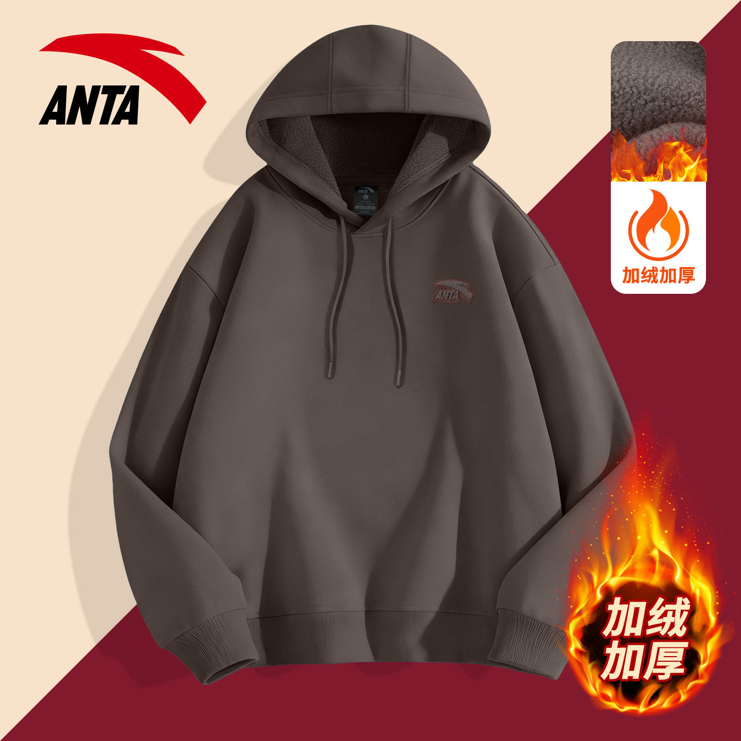 📚 安踏连帽卫衣男女加绒帽衫2025冬季新款酒红色新年衣服内搭上衣