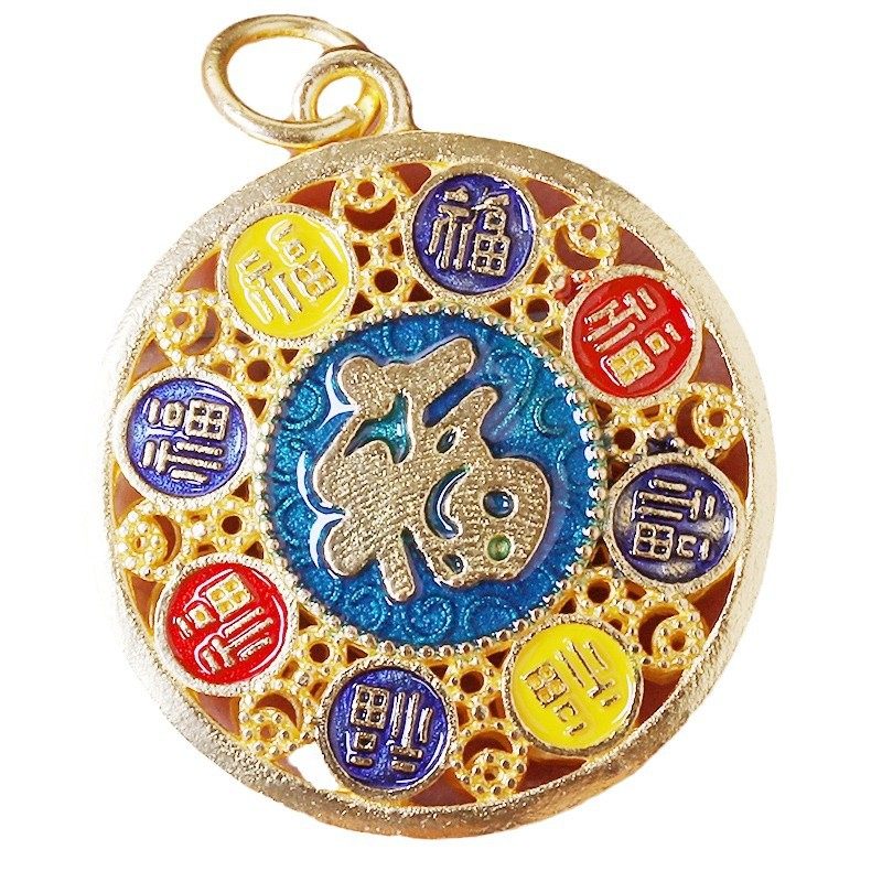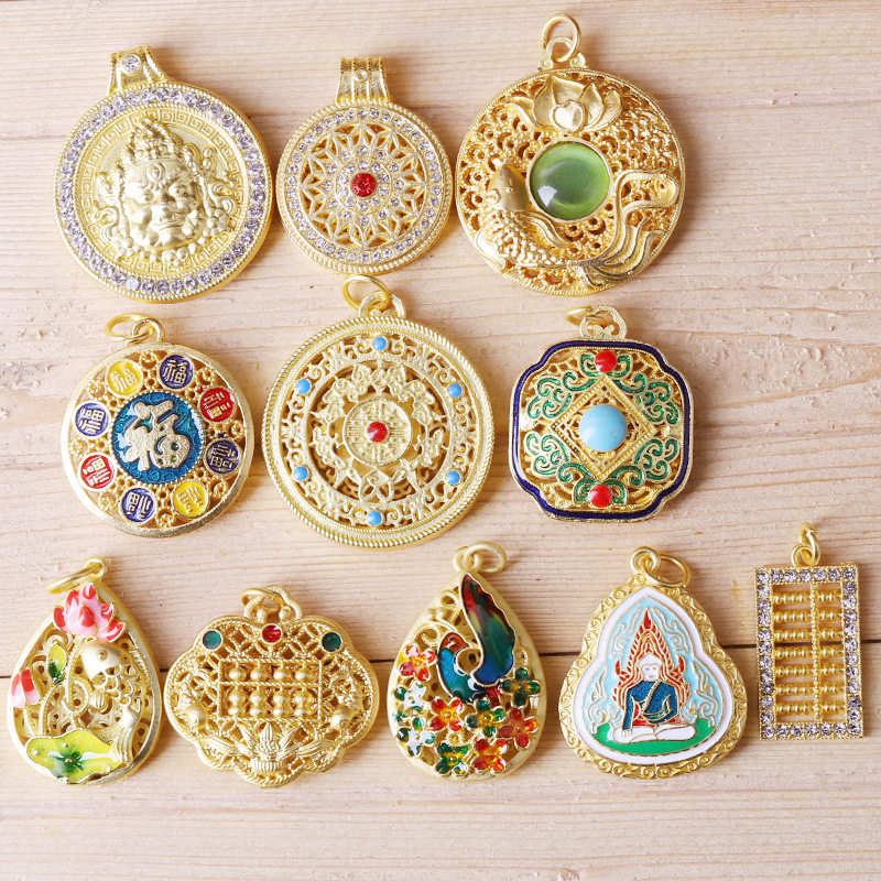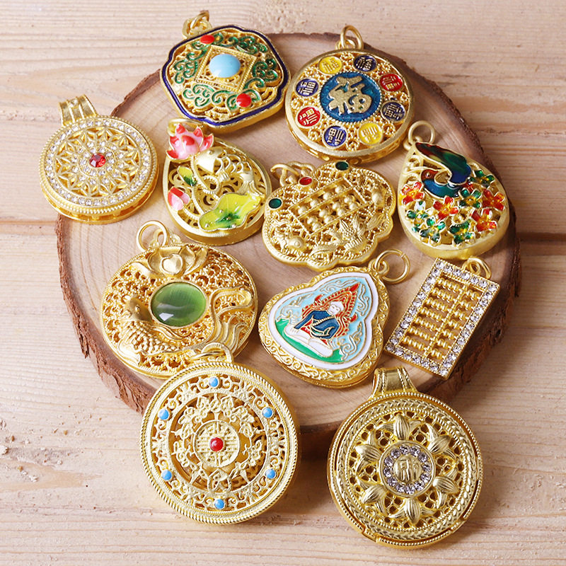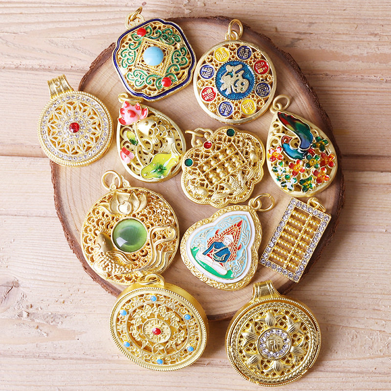📚 古法金长命锁吊坠国潮古风沙金烧蓝项坠锦鲤莲花孔雀心经葫芦单坠