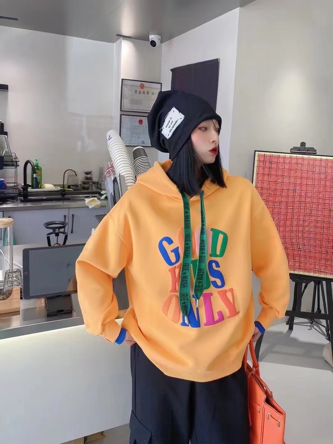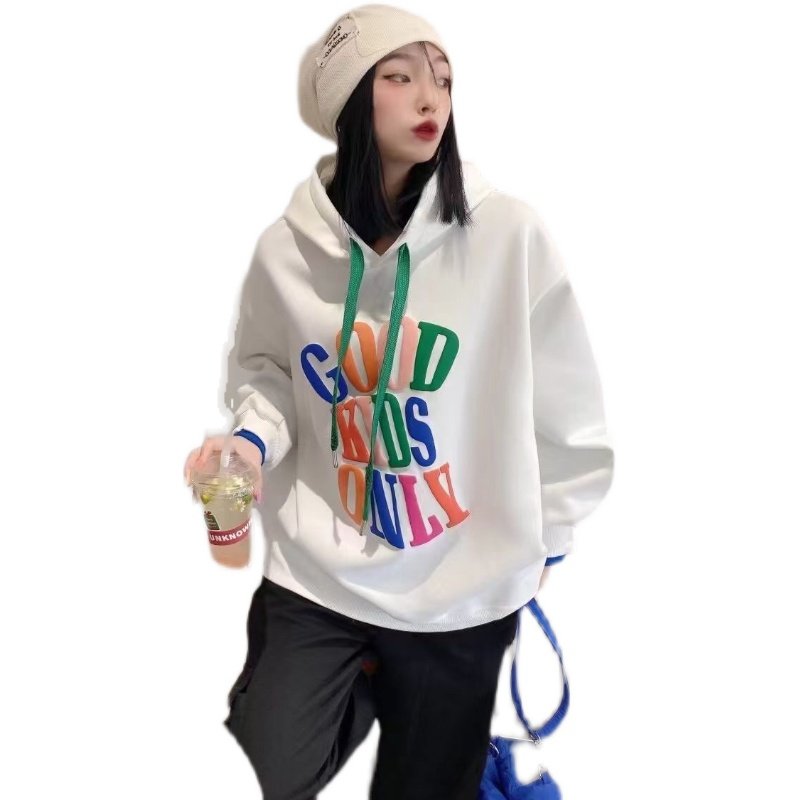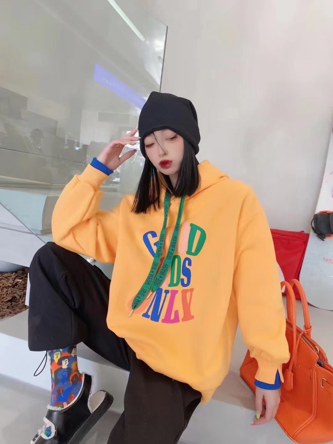 📚 国潮牌春美式街头落肩连帽慵懒风小众情侣加绒卫衣男女!白黄两色