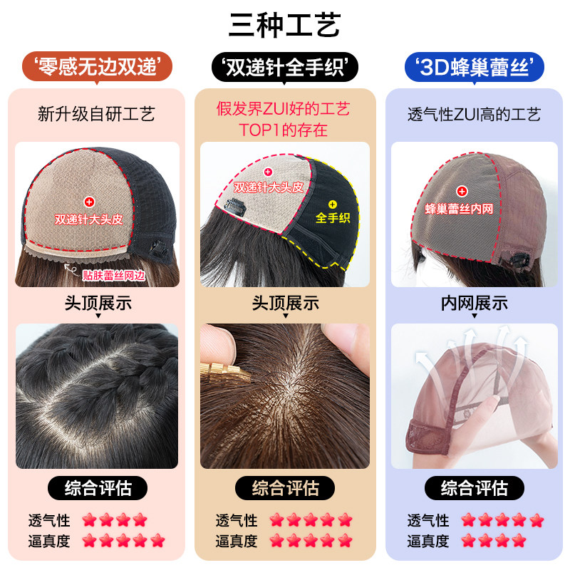 📚 美禾 双递针假发女全真人发一刀切长直发自然逼真bobo短发全头套