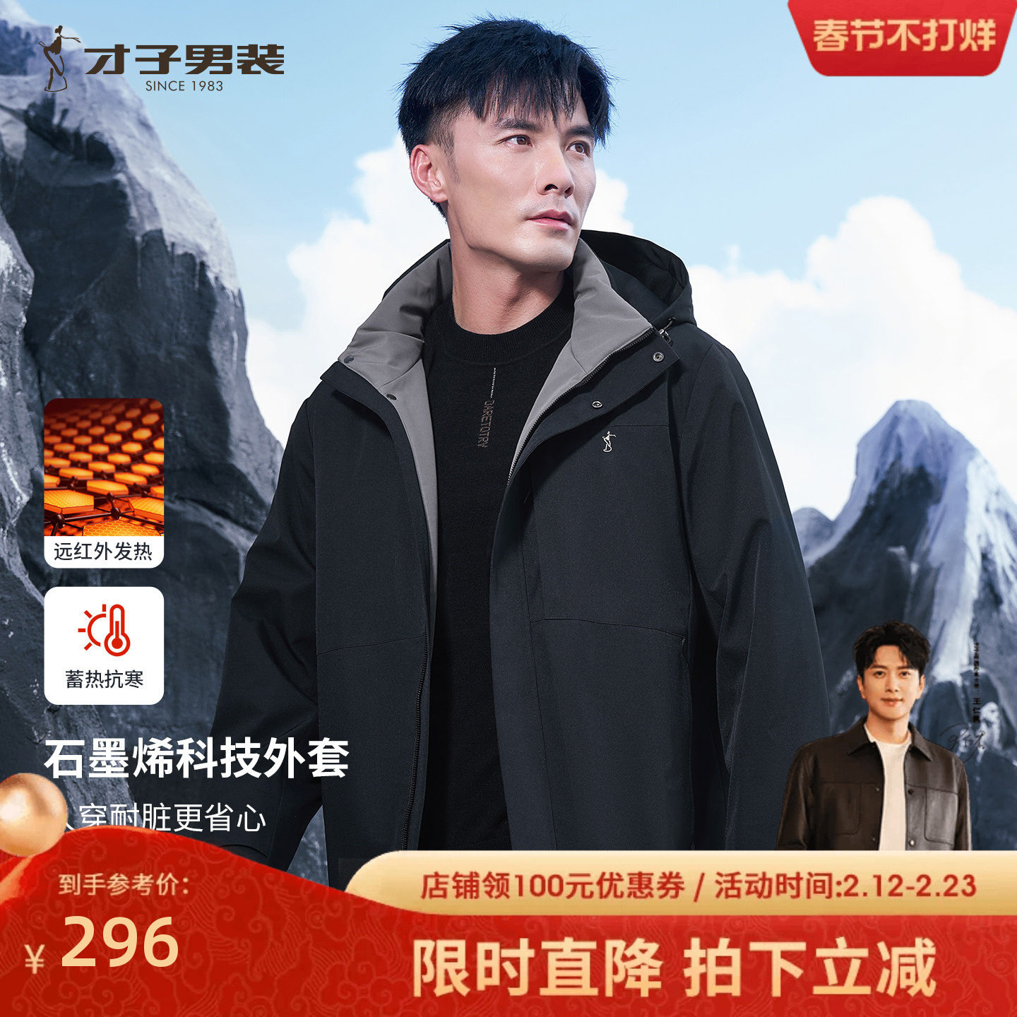 📚 才子石墨烯连帽棉服男2025冬季新款高端加厚保暖休闲短款棉衣外套