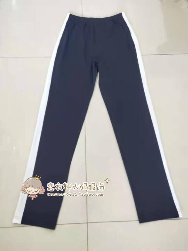 📚 订做纯棉中小学生男女校服长裤深藏蓝色拼白色宽杠收紧口运动校裤