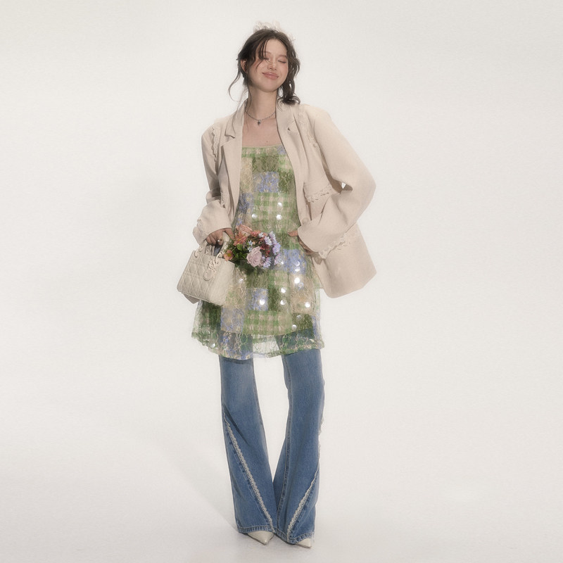 📚 SASSY MOODY 仲夏夜之梦 原创重工亮片吊带气质蕾丝度假A字连衣裙