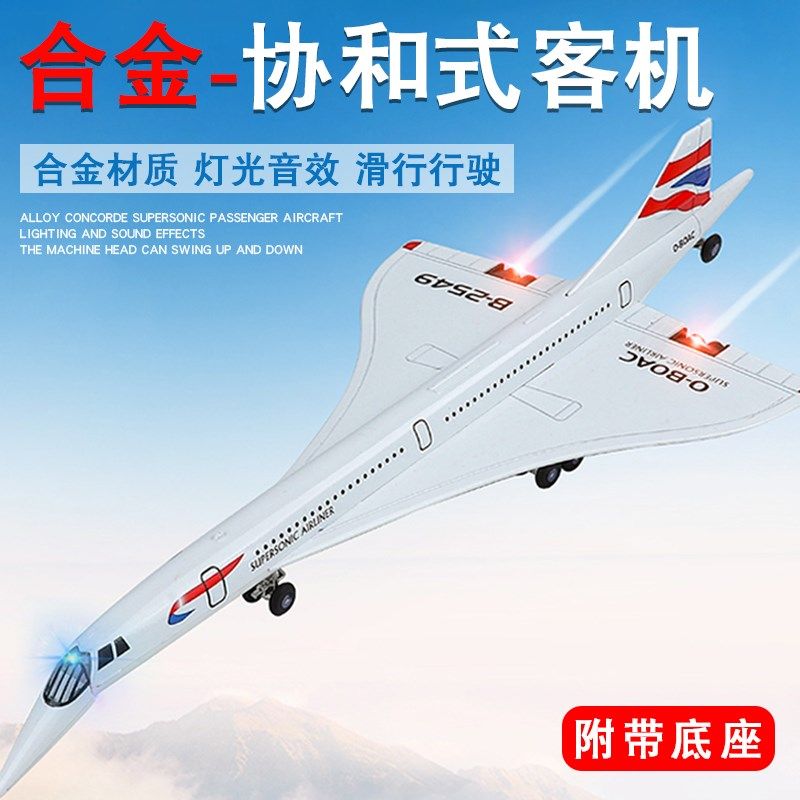 📚 协和式超天速飞机玩具男音合金仿真大号客L机航孩航空运输模型摆