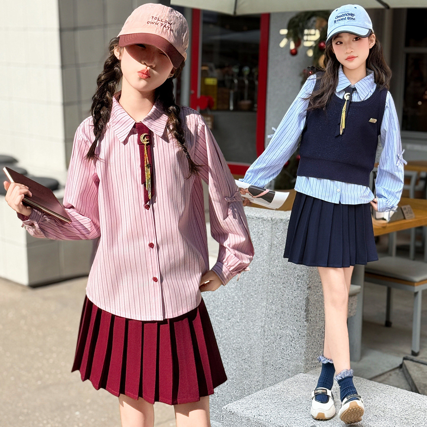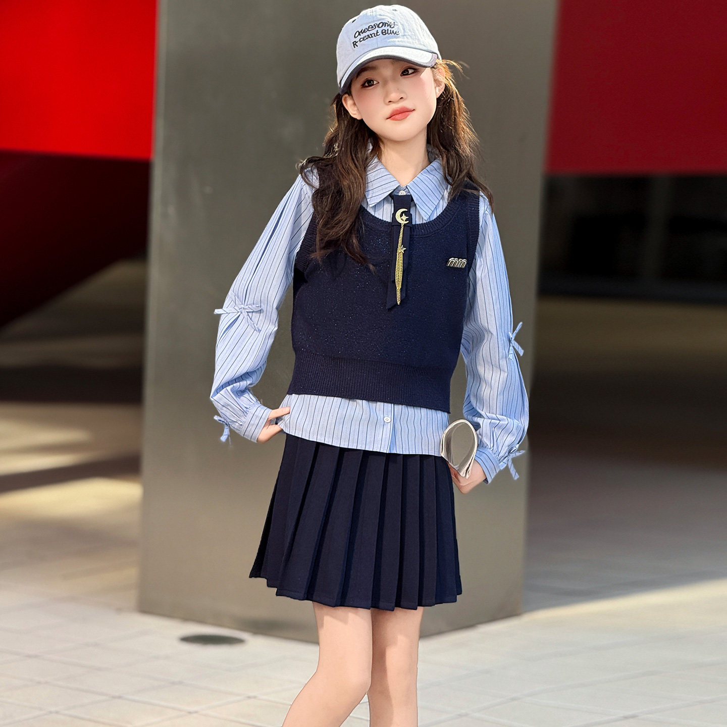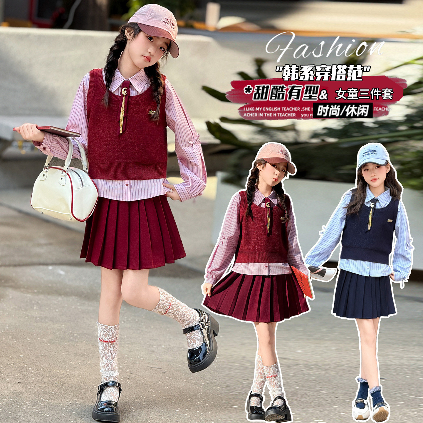 📚 女童JK制服套装中大童学院风百褶裙2026春夏新款初中生韩系连衣裙