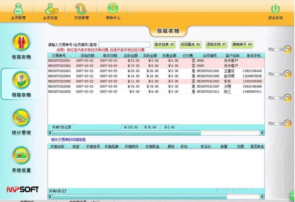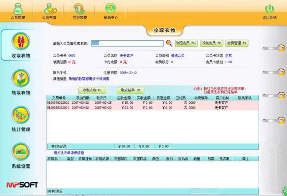 📚 美萍干洗店收费系统 洗衣店收银软件会员取衣管理 洗衣房前台接待