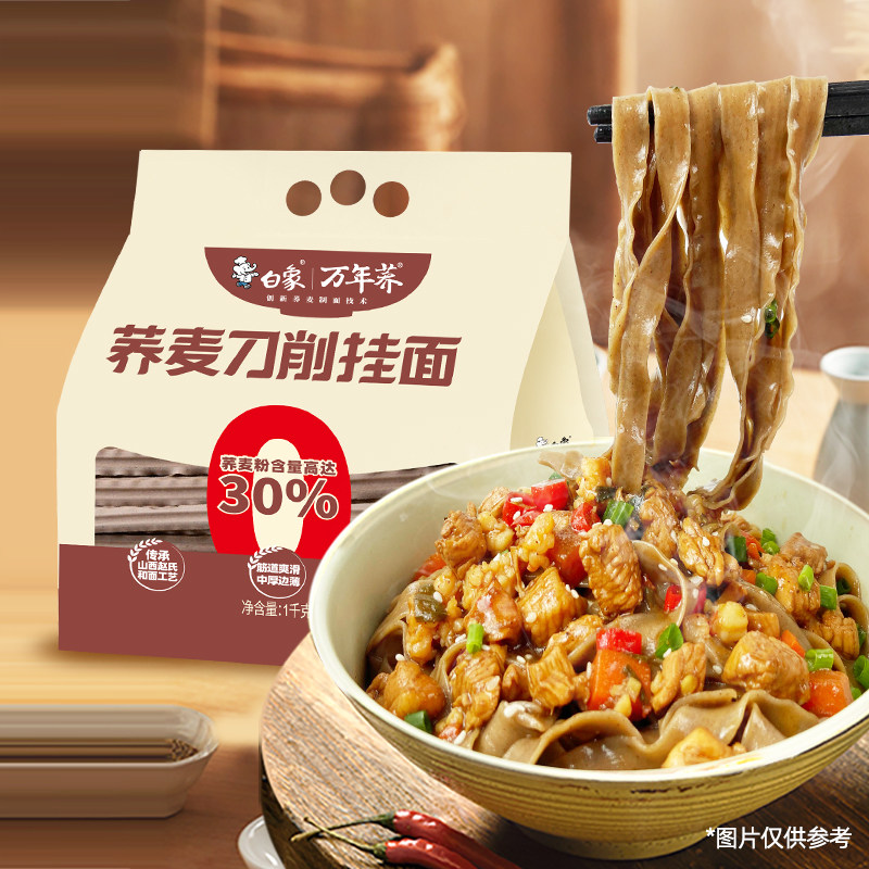 📚 白象低脂肪荞麦面刀削面面条挂面荞麦面条刀削面宽面粗粮主食1kg