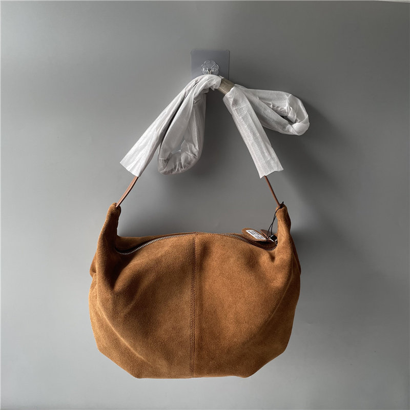 📚 2024秋冬新款时尚欧美风单肩斜挎女包磨砂牛皮休闲百搭饺子包
