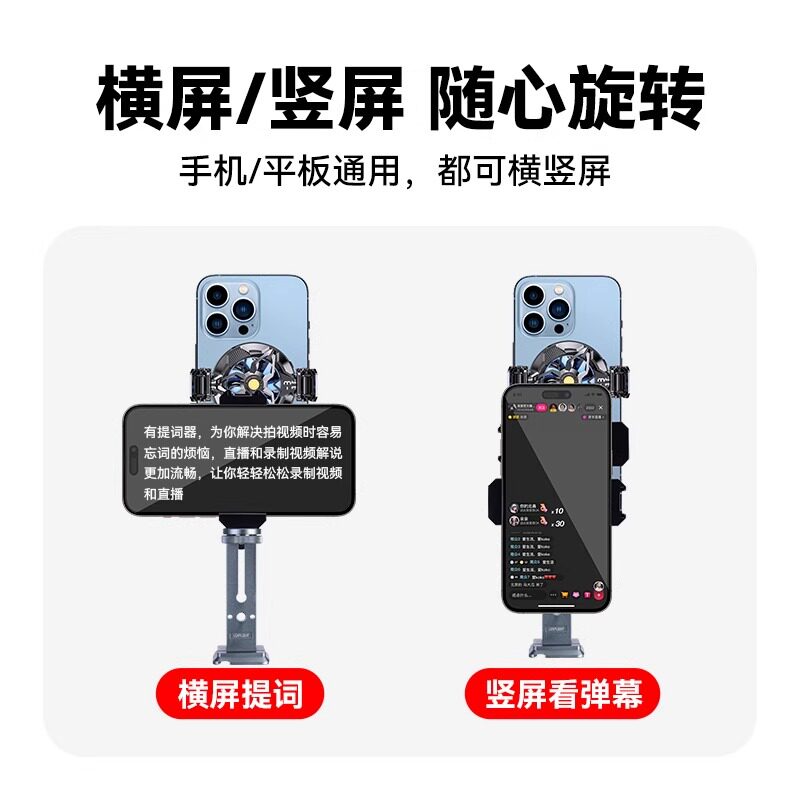 📚 双面手机直播手持充电宝支架带提词器双机位题词户外直播架补光灯散热器全套设备台词提示器桌面落地支撑架子