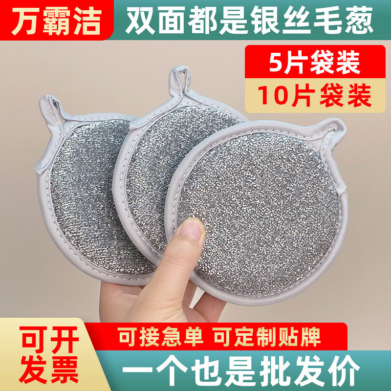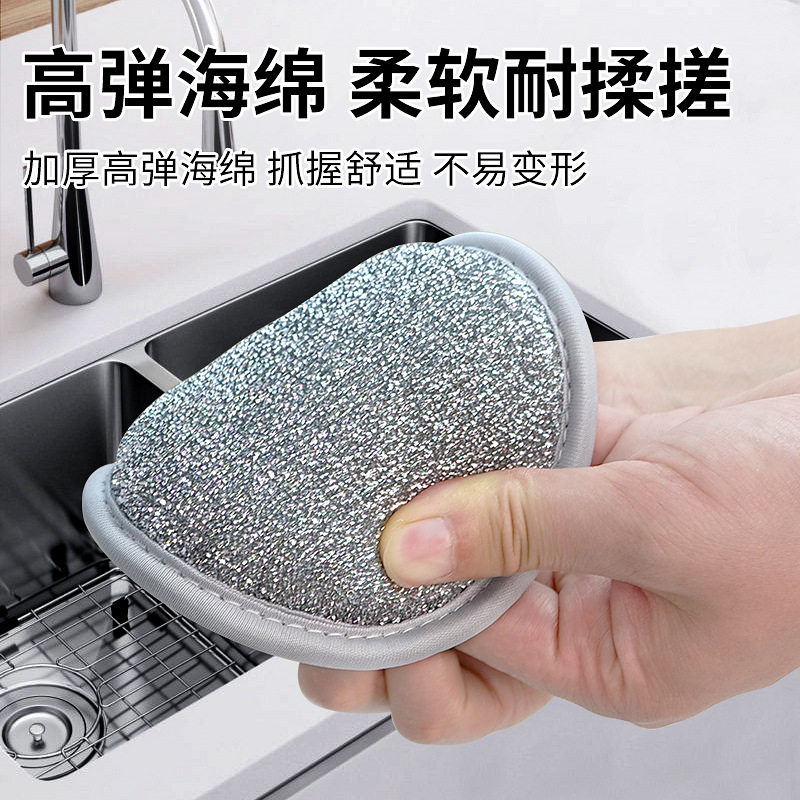 📚 海绵块钢丝洗碗布不沾油厨房专用银丝抹布洗碗海绵擦刷碗神器双面