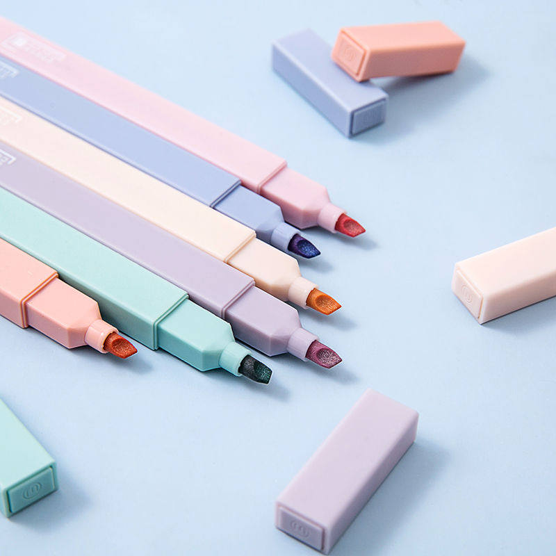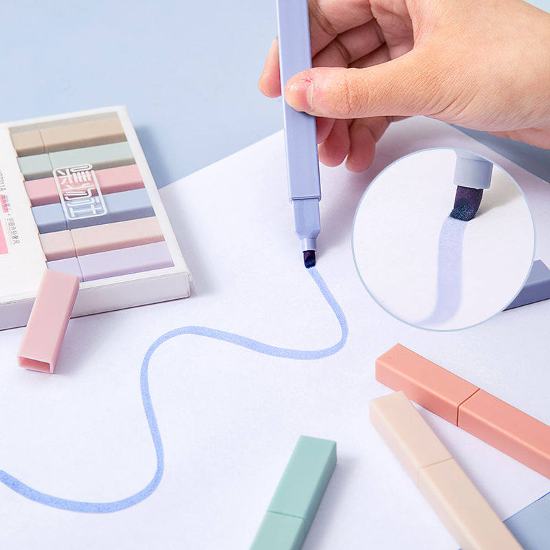 📚 集物社莫兰迪6色轻言甜系软头荧光笔ins高颜值套装大容量轻言盐系学生划重点标记笔彩笔做笔记专用