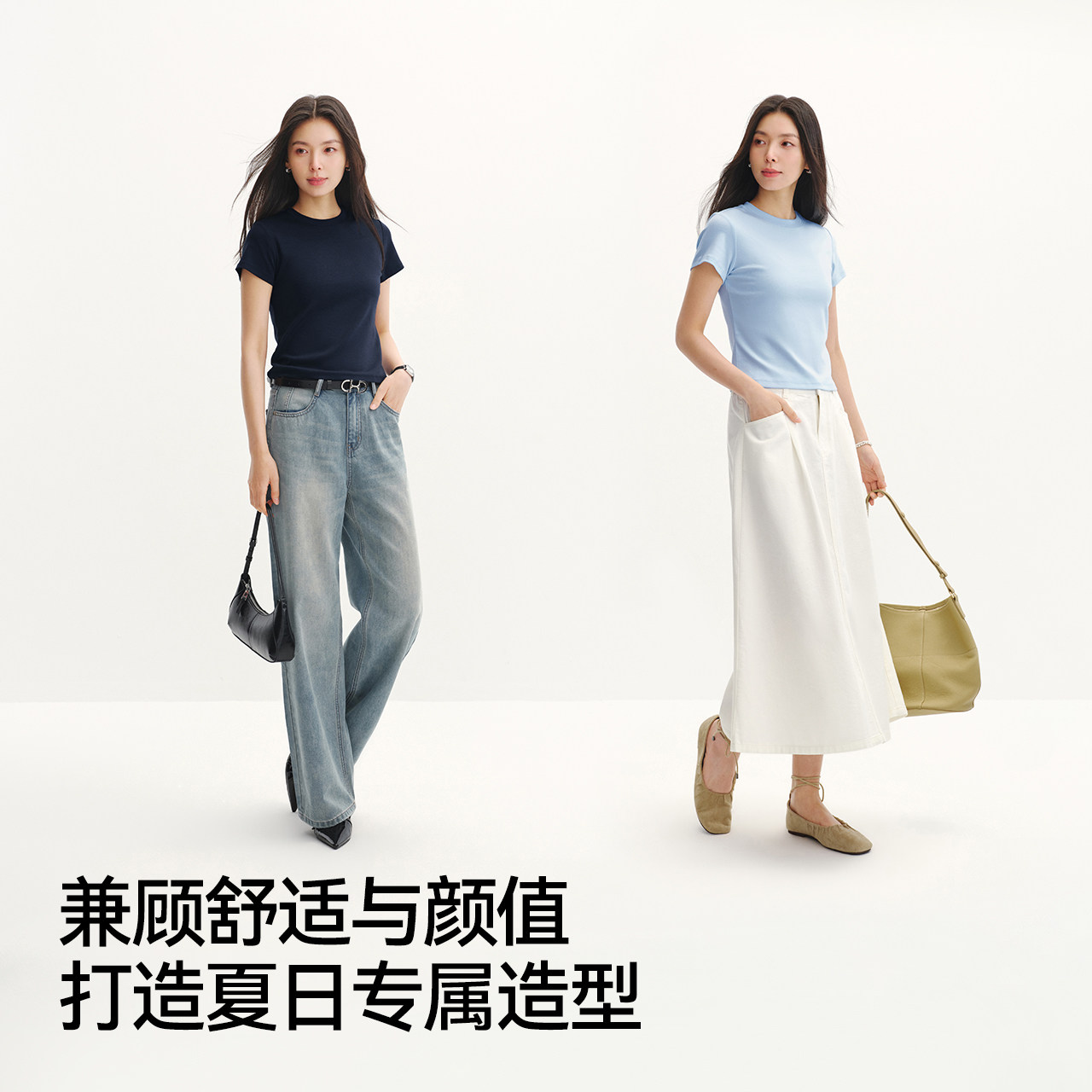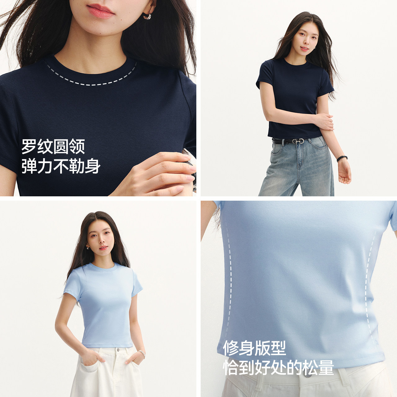 📚 凉感T|森马短袖T恤女夏短款修身正肩圆领上衣2026新款百搭套头衫