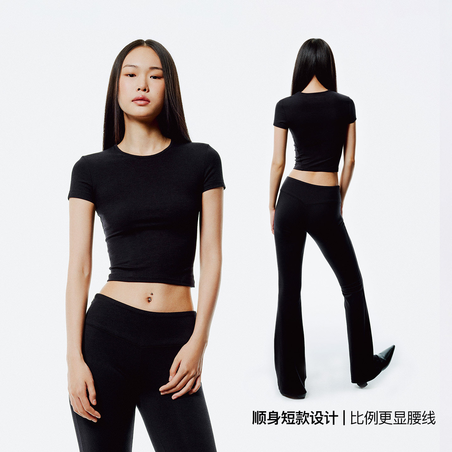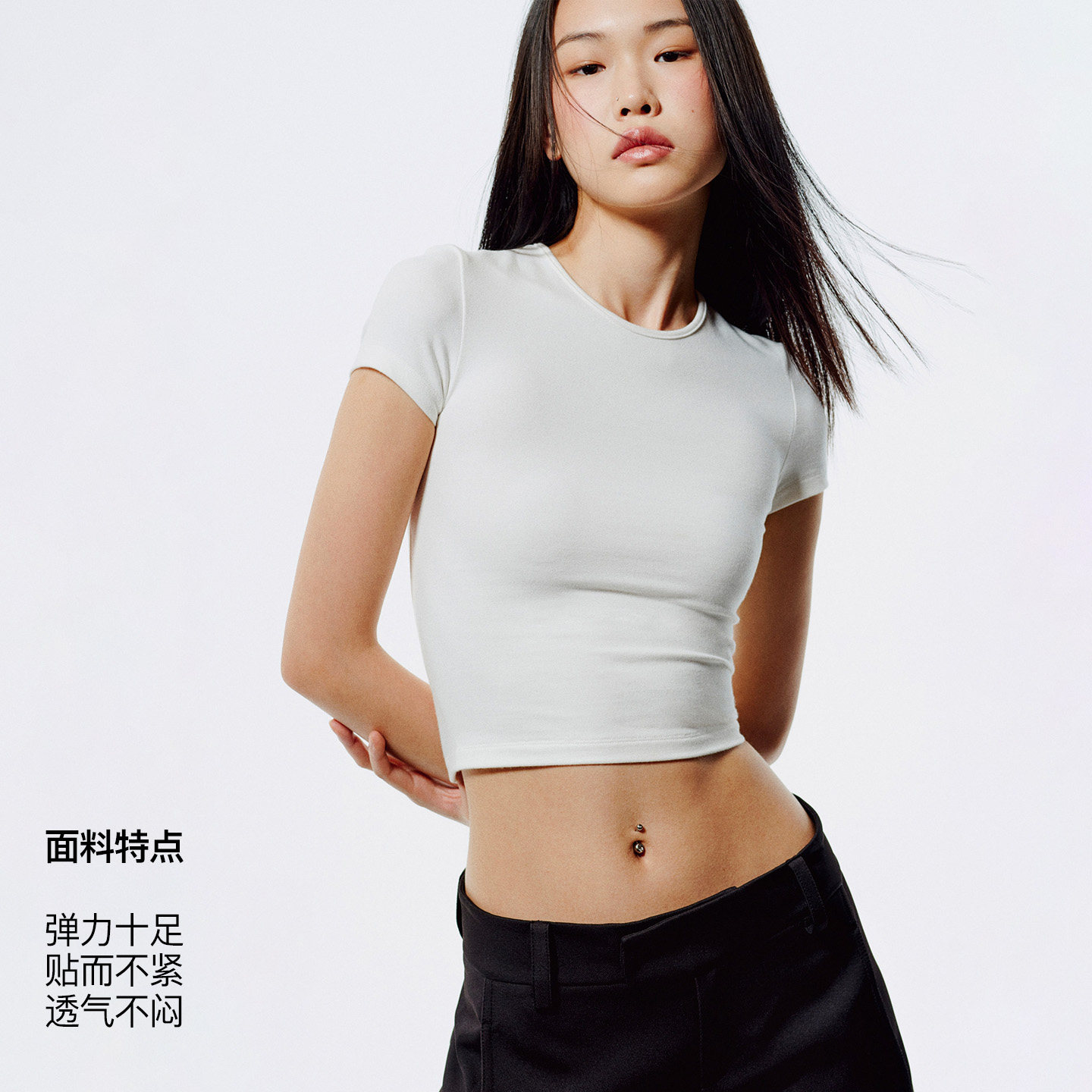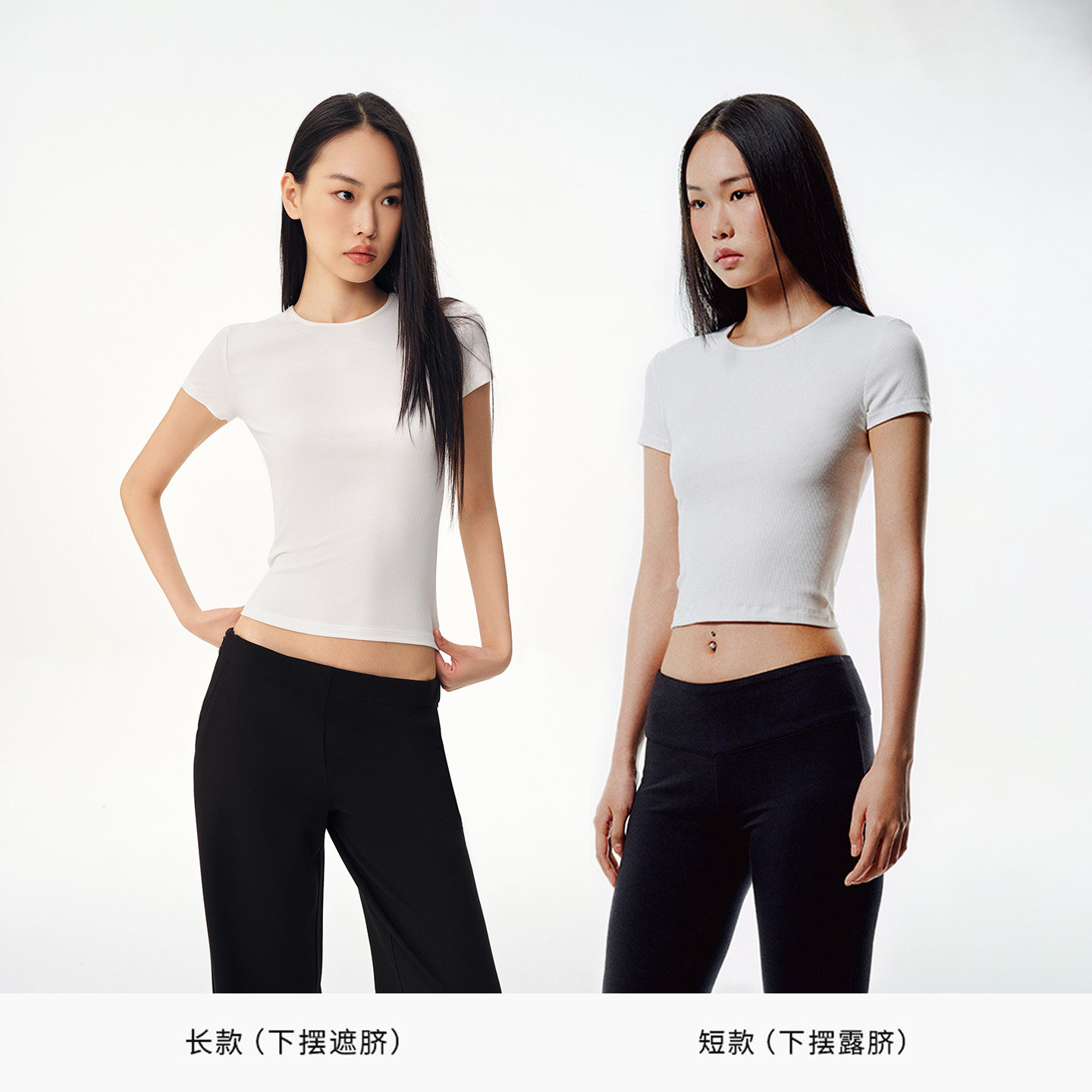 📚 asomesome白色修身正肩短袖t恤女短款紧身圆领运动半袖打底上衣