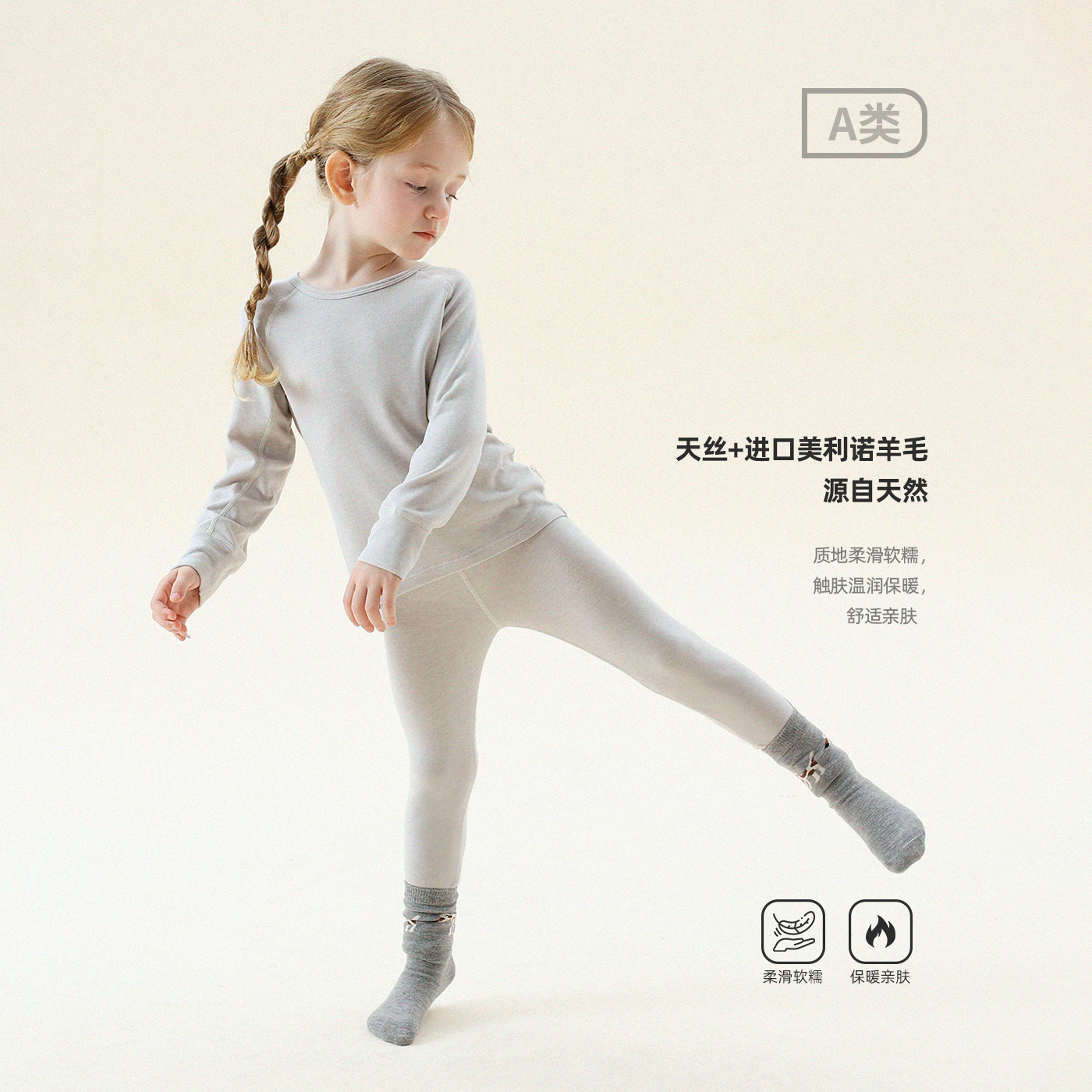 👖裤子同样也是天丝羊毛材质,质感十足。穿上身柔软贴身,弹性十足,真的是儿童冬衣的首选。而且这款裤子还有很好的保暖效果,无论是在家里还是出门,都能让你感到温暖如春。