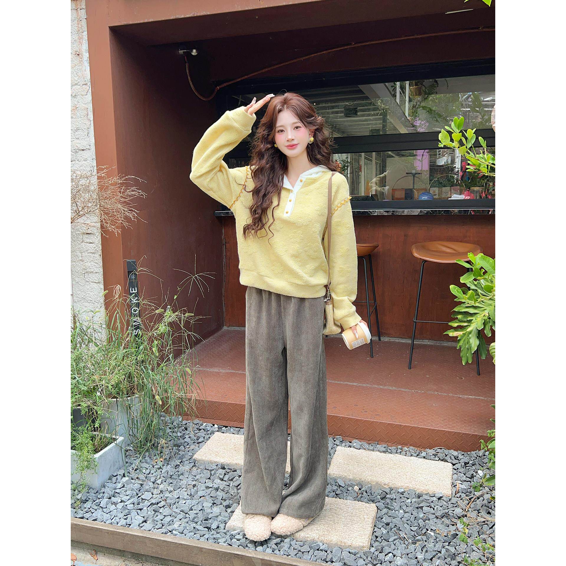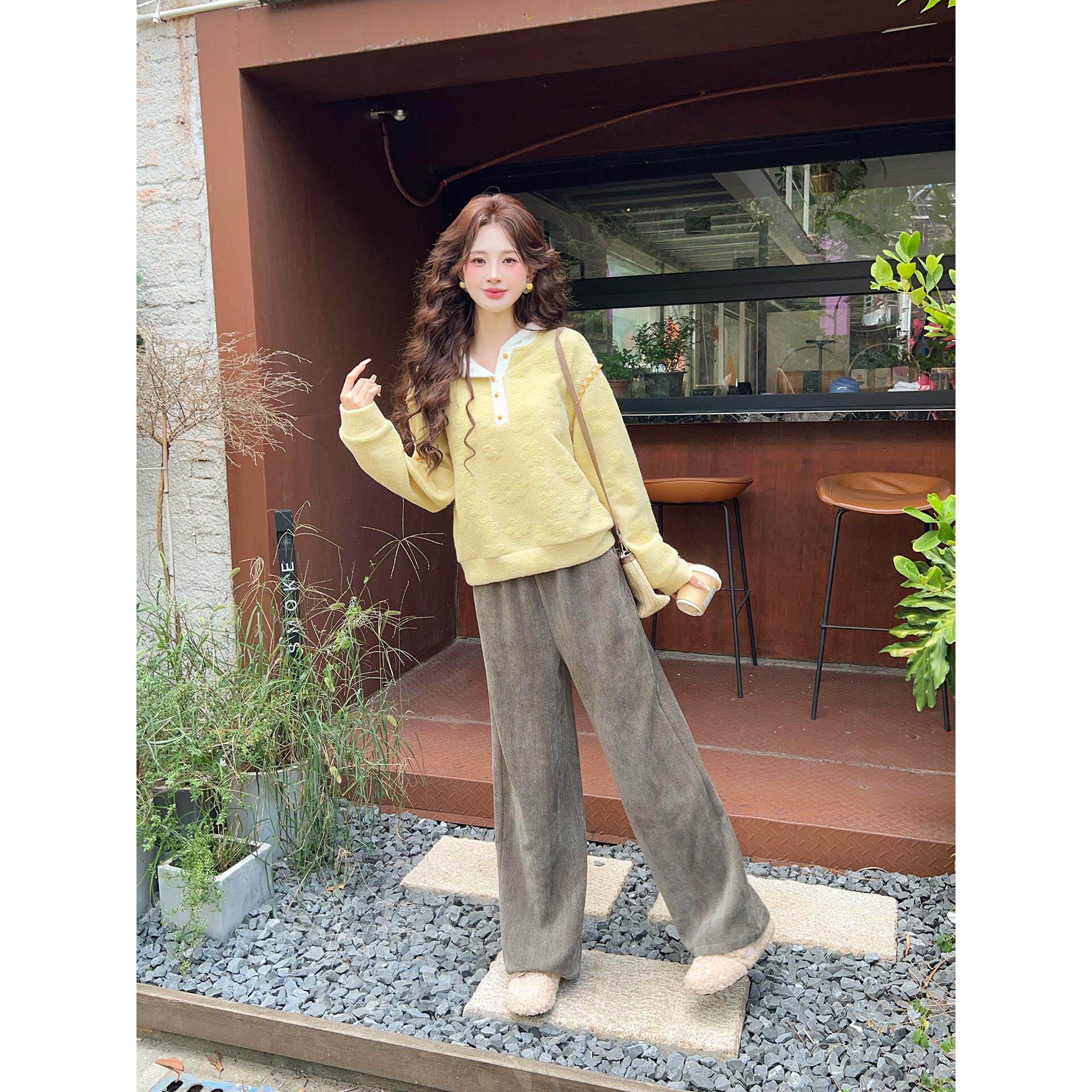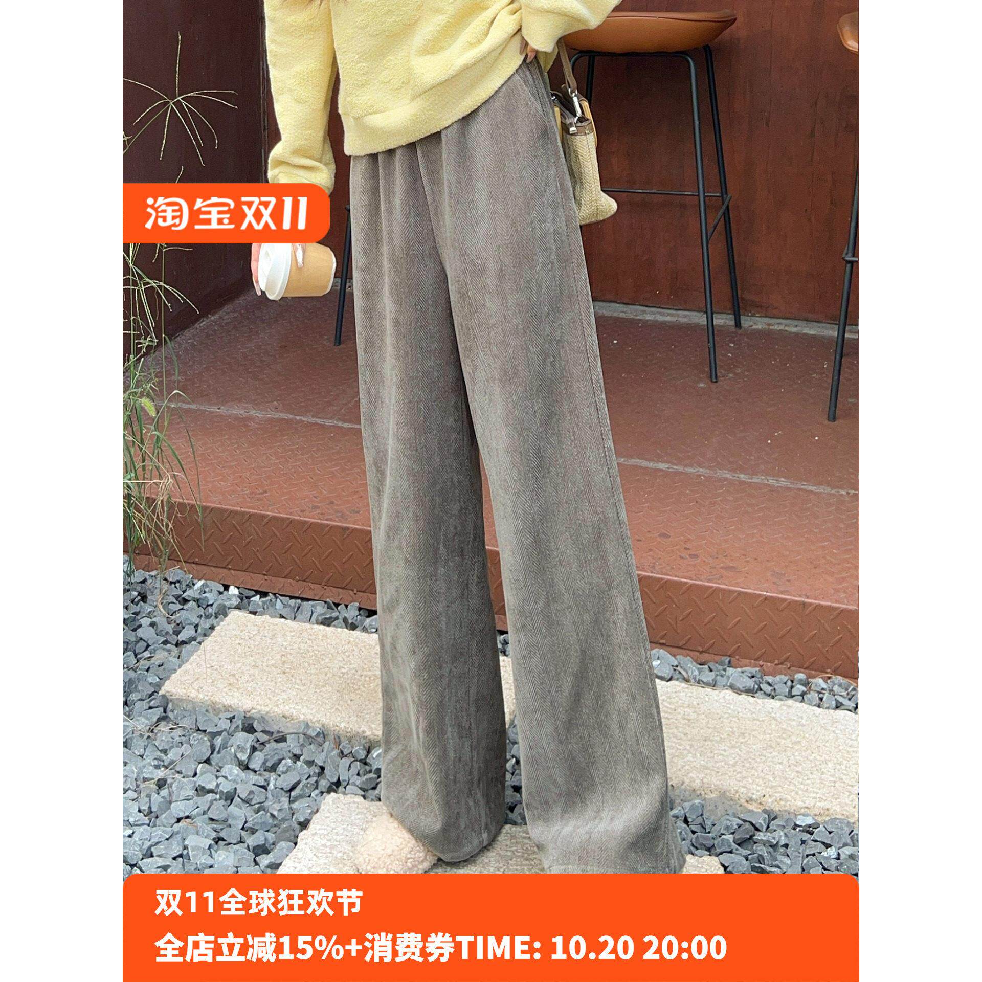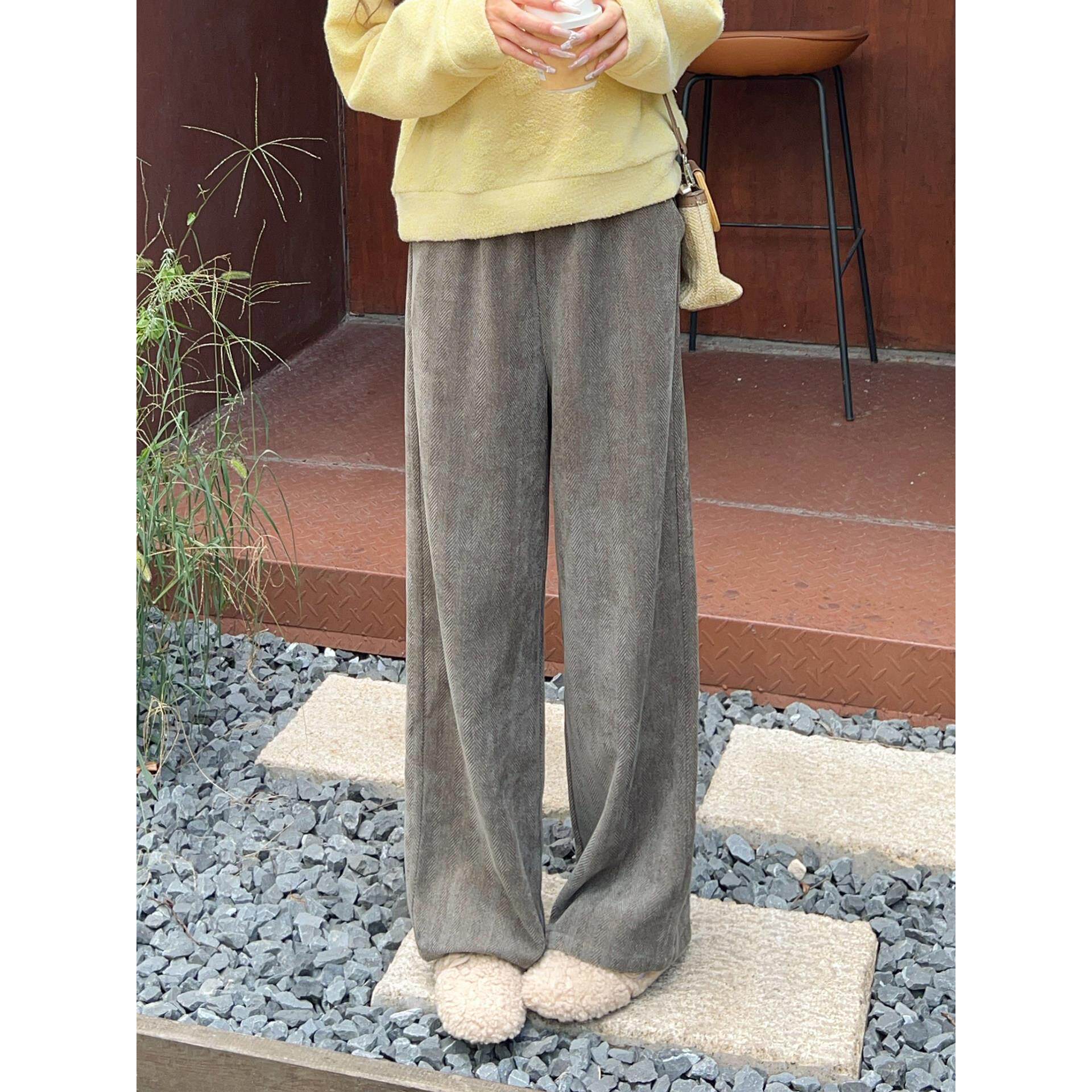📚 温舒敏【广岛少女】雪尼尔灰色阔腿裤女秋冬高腰垂感直筒休闲长裤