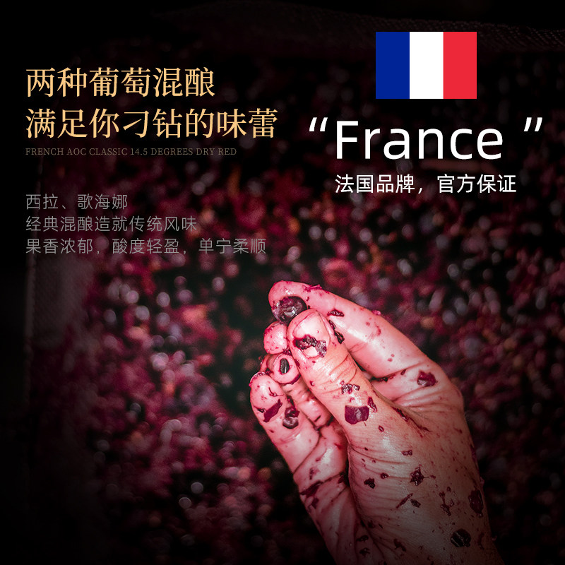 📚 【自营】法国进口红酒罗纳河谷AOP级西拉干红葡萄酒整箱礼盒装