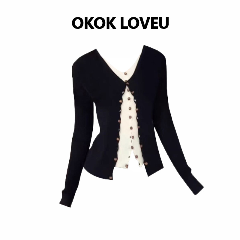 #OKOKLoveU #山茶花毛衣 #韩系假两件毛衣女 #设计感针织开衫 #券后价59.9
