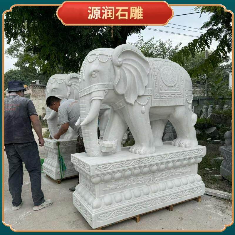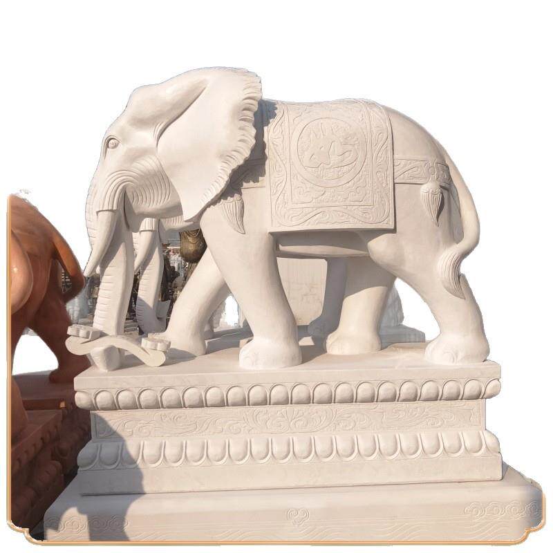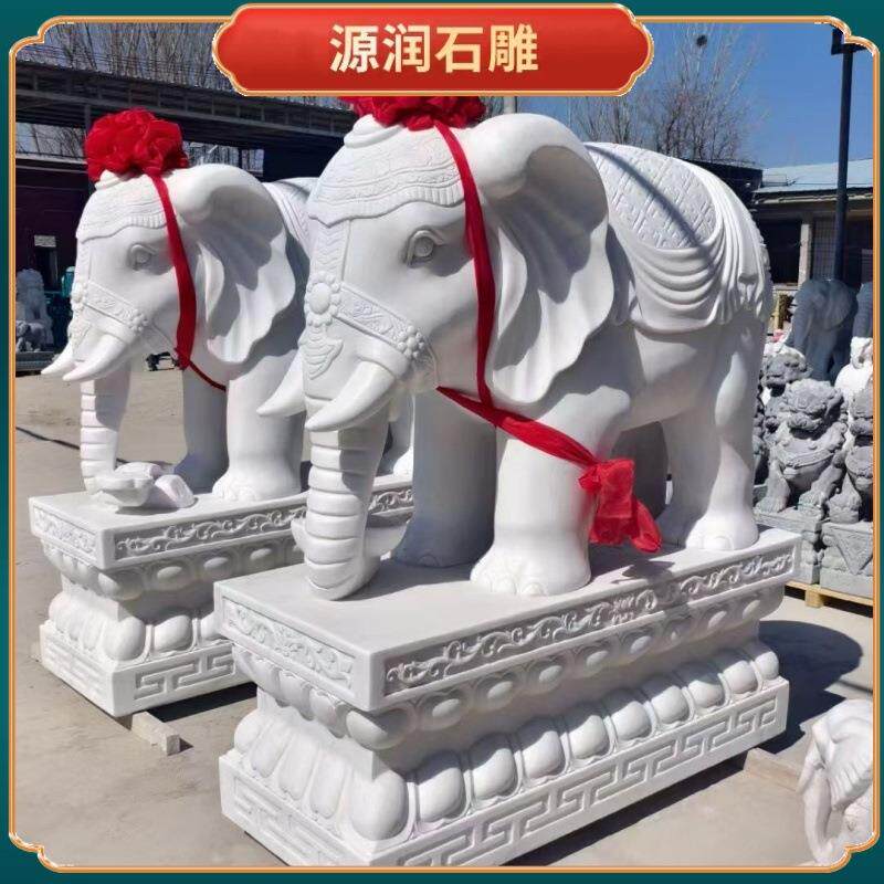 📚 汉白玉石雕大象一对庭院别墅酒店门口石象摆件门口摆饰石雕大象