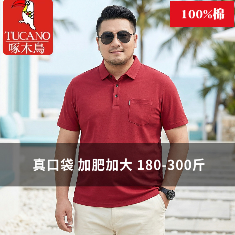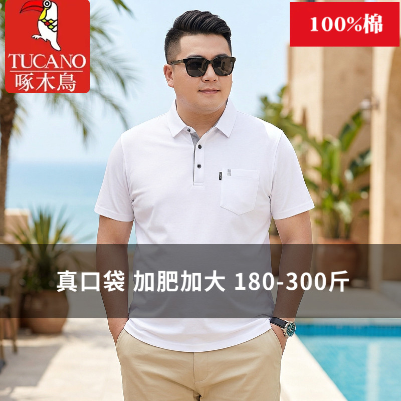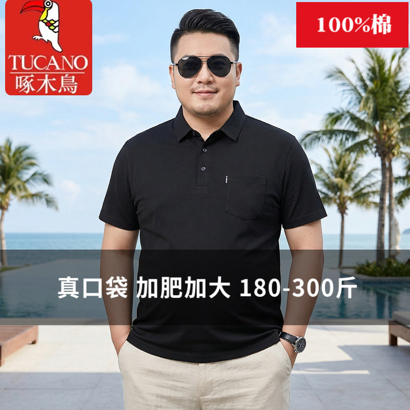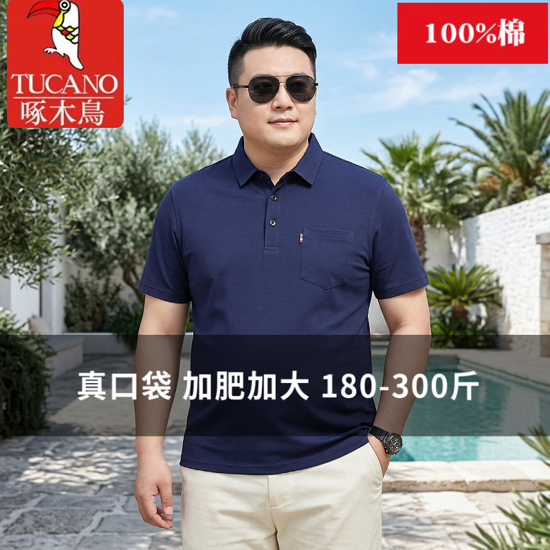 📚 啄木鸟短袖POLO衫男款宽松大码中年爸爸装加肥加大胖子T恤真口袋