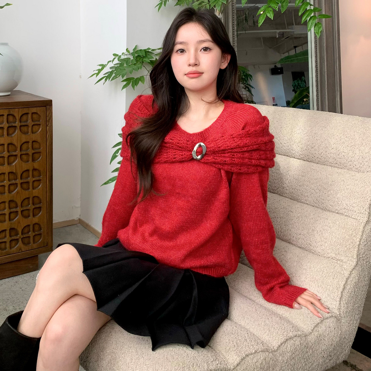 58¥ CZ057 hpsxUM5oIzD¥ https://m.tb.cn/h.7C4fnkH 【织就心愿】ELLE新年红披肩毛衣女2026春季镂空慵懒绵羊毛针织衫 --------------------- 【原售价】769元 【现售价】529元。