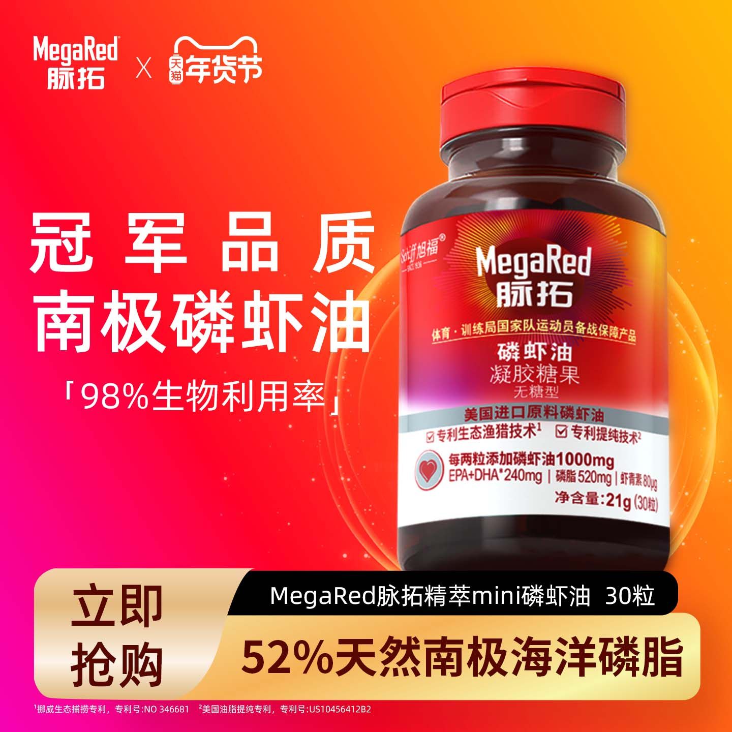 📚 MegaRed脉拓精萃南极磷虾油软胶囊虾青素鱼油升级 3瓶礼盒装