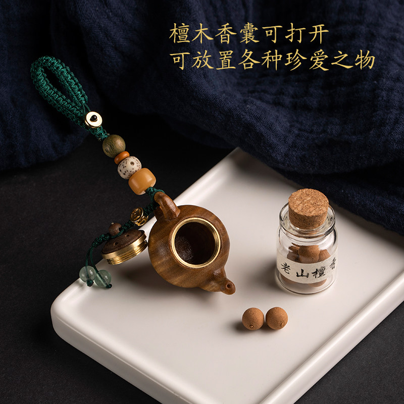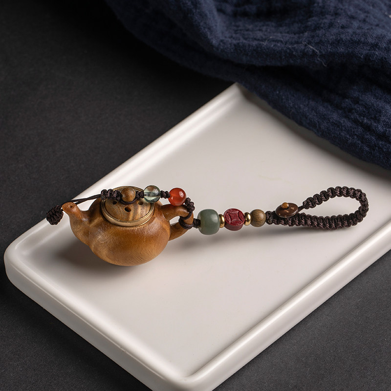 📚 绿檀木把把壶汽车钥匙扣挂件小茶壶把把胡手把件随身麻将助赢神器