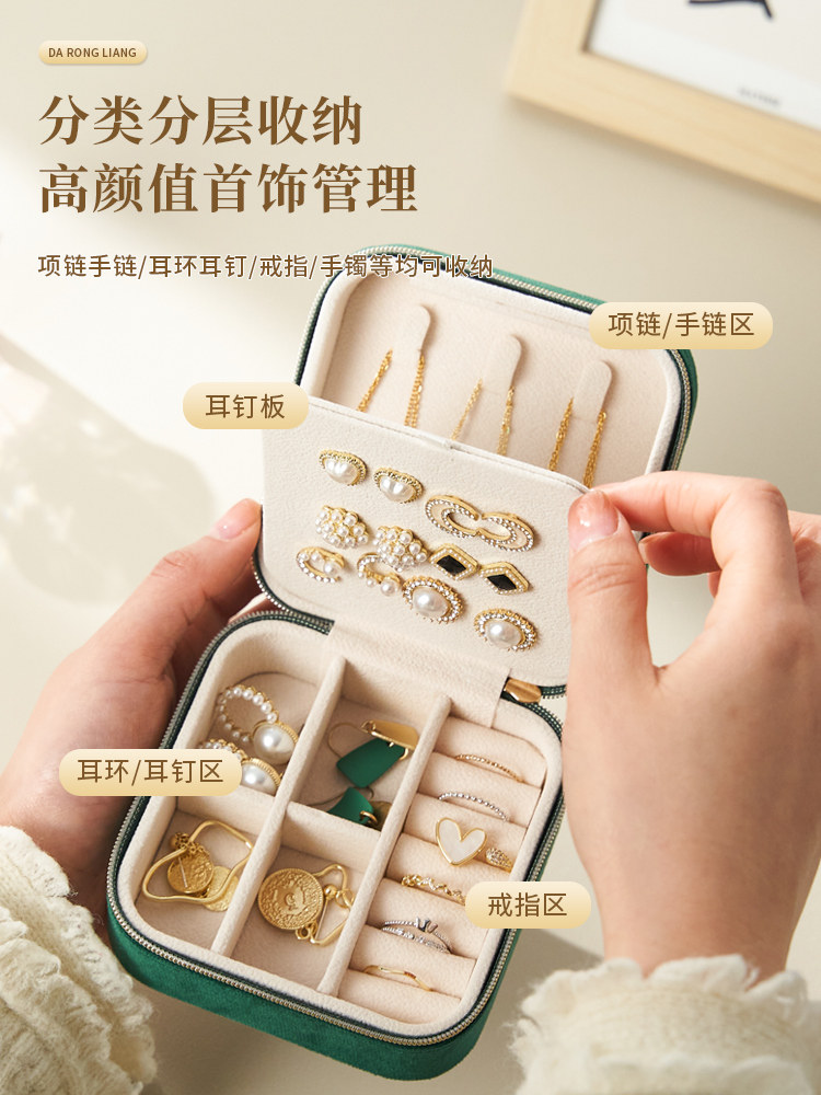 📚 网红首饰盒2023新款耳夹镯子收拾收纳盒高级感多层带锁盒子ins风