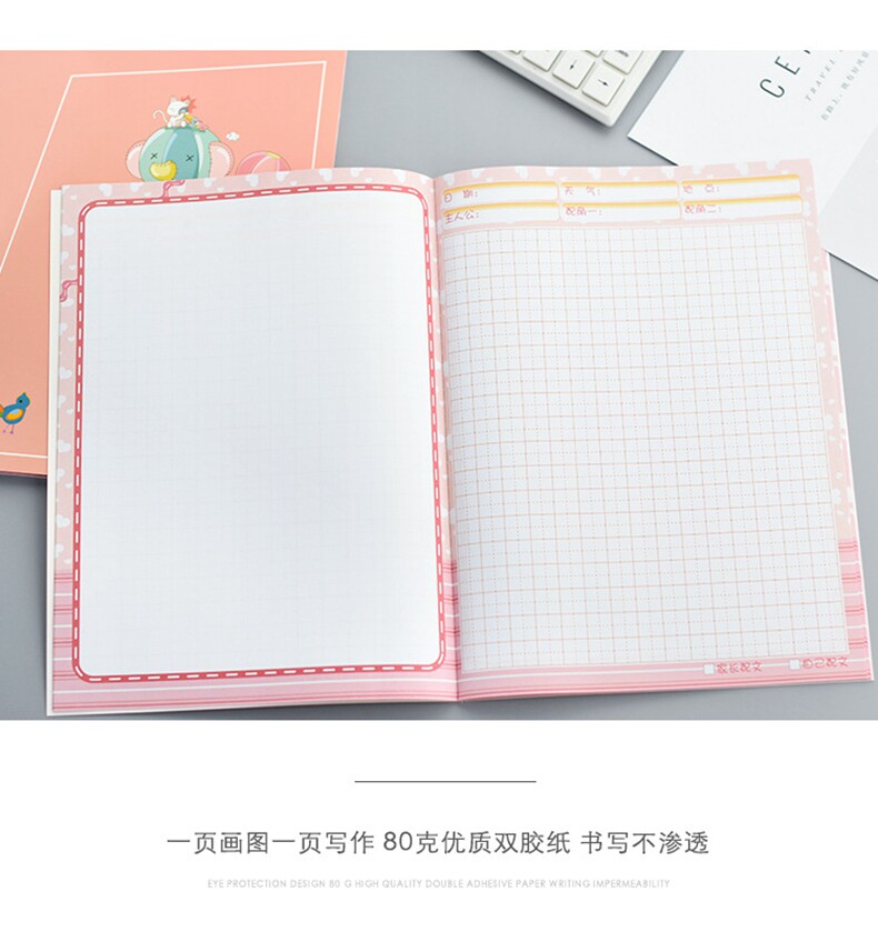📚 【昕果】红色封面 小学生 一周一画本 画图写话本 16张32页 A4 一二三四五六年级幼儿园少儿绘图本 创意儿童画画日记本