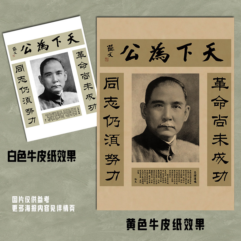 📚 孙中山宋庆龄画像怀旧复古牛皮纸海报爱国装饰画芯墙贴画报书房