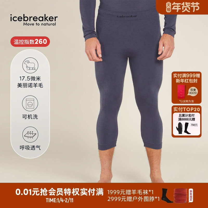📚 icebreaker17.5微米美丽诺羊毛男260 Seamless七分裤户外运动徒步
