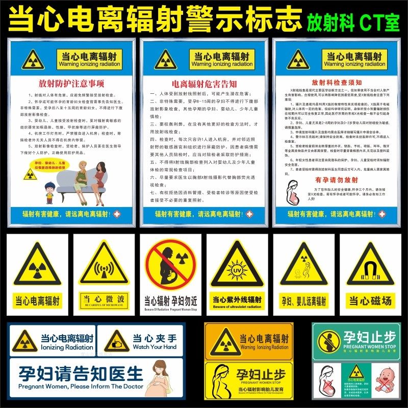 📚 医院放射科拍片室磁共振CT室门口警示标志当心电离辐射磁场微波紫外线请勿靠近标识牌儿童孕妇止步提示牌贴纸
