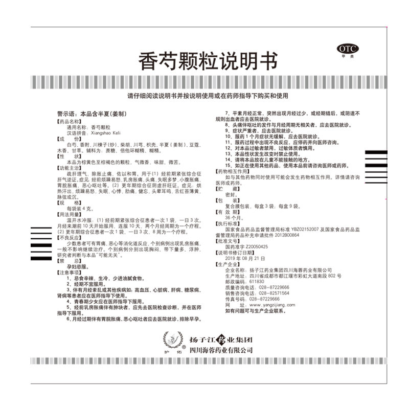 📚 扬子江香芍颗粒药3袋经前期紧张痛经调理气血更年期失眠妇科调理