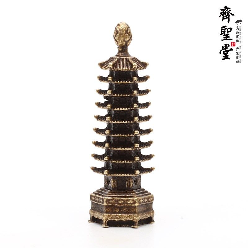 📚 黄铜仿古九层文昌塔9层文t笔塔文峰塔复古小摆件 办公室书桌小物