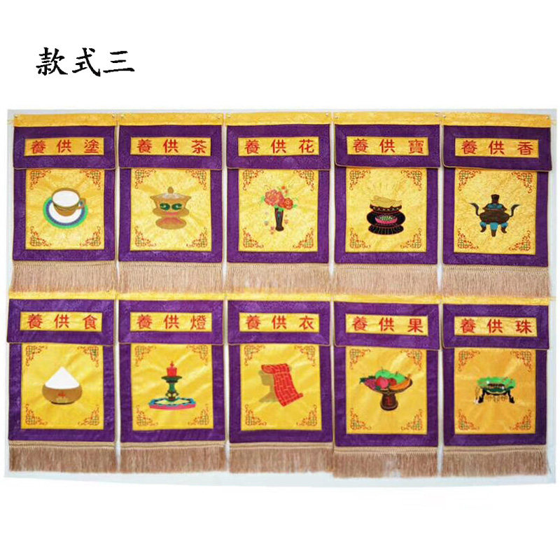 📚 十供养一,供天寺院水陆法会用品十供养 戒定真香 托盘幡桌围