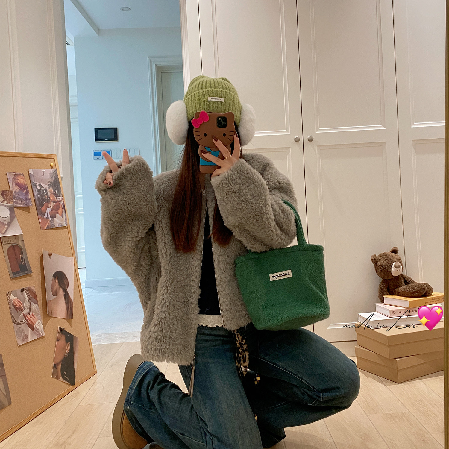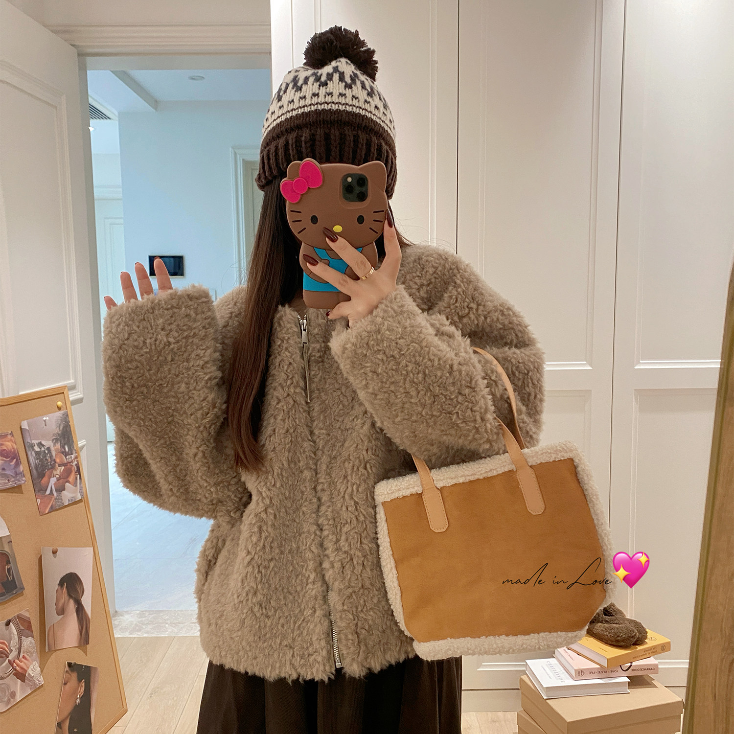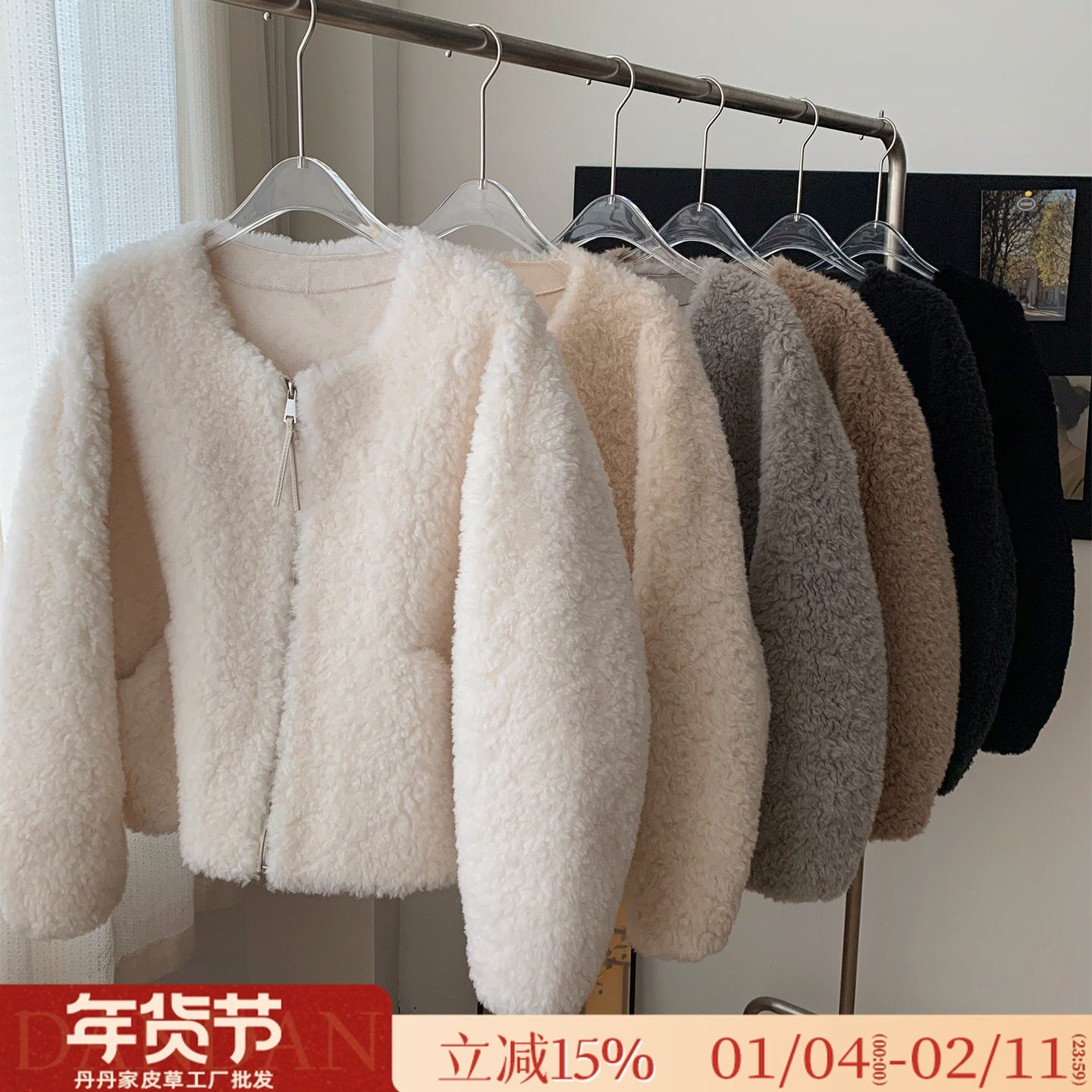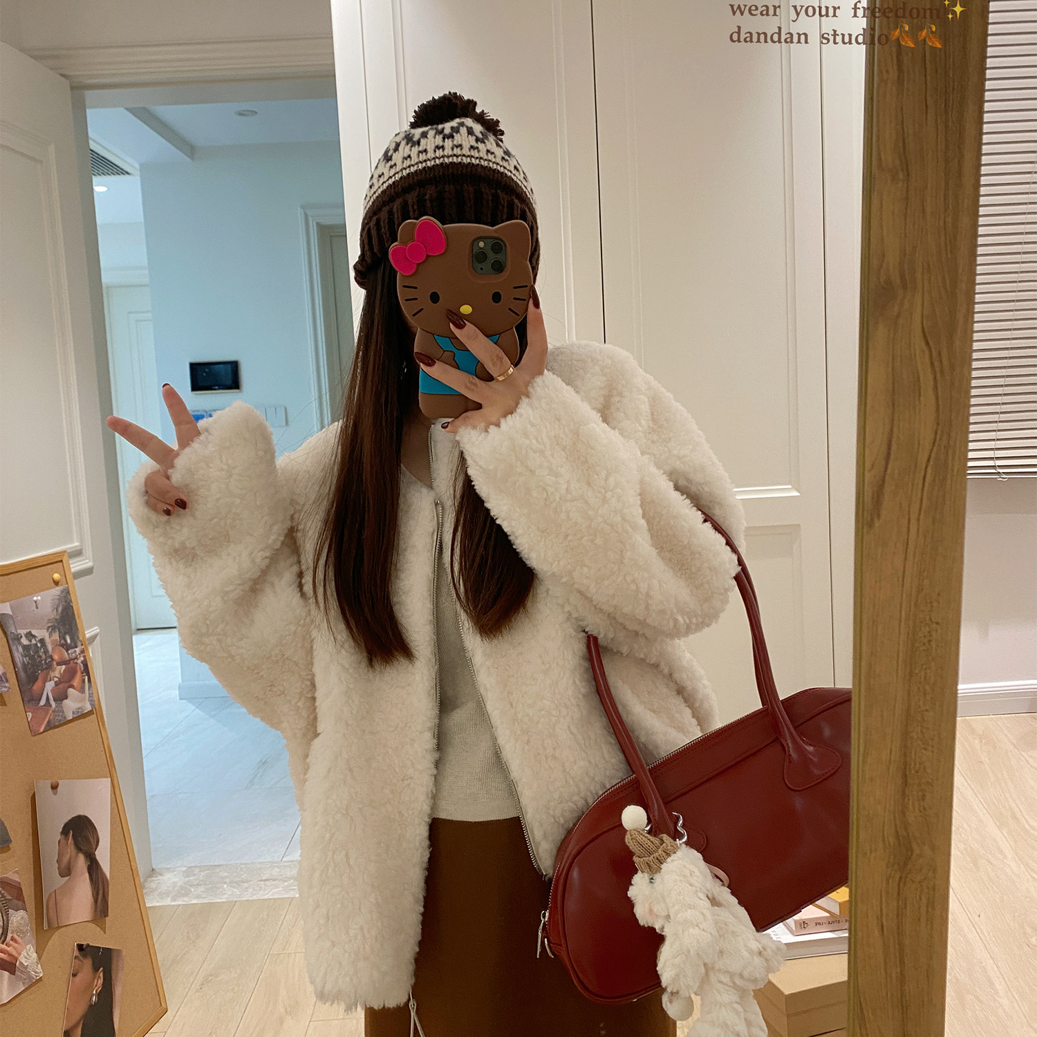📚 韩系圆领拉链款蝙蝠袖100羊羔毛皮毛一体2025新款皮草毛毛外套女